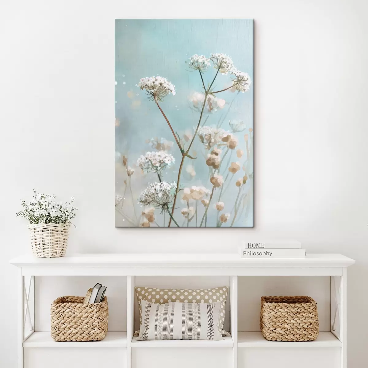 Vászonkép Kék háttér előtt akvarell stílusban festett királynő Anne csipkevirágok Nr s45722