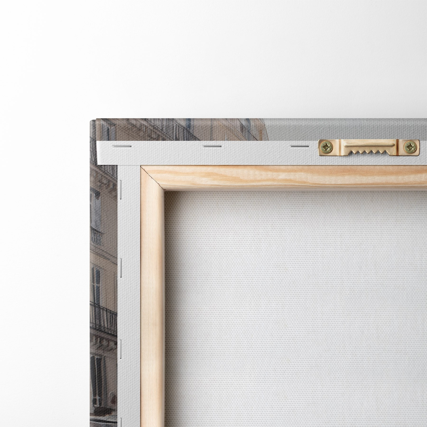 Ahhoz, hogy a vásznat a feszítőrúdra feszítsük anélkül, hogy a kép megsérülne, tükrözött képet használunk.