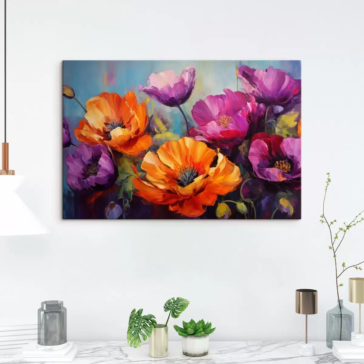 Vászonkép Világos lila és narancssárga árnyalatú pipacsok Nr s45804