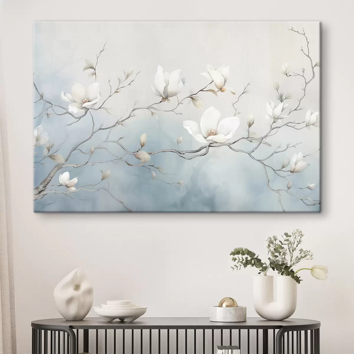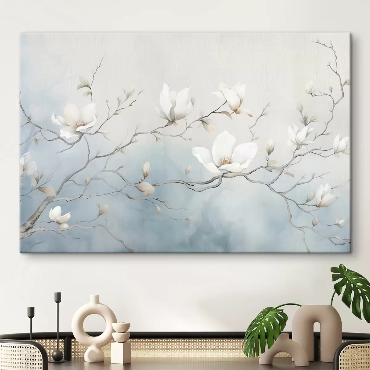 Vászonkép Magnólia ágak fehér virágokkal finom háttér előtt Nr s45806