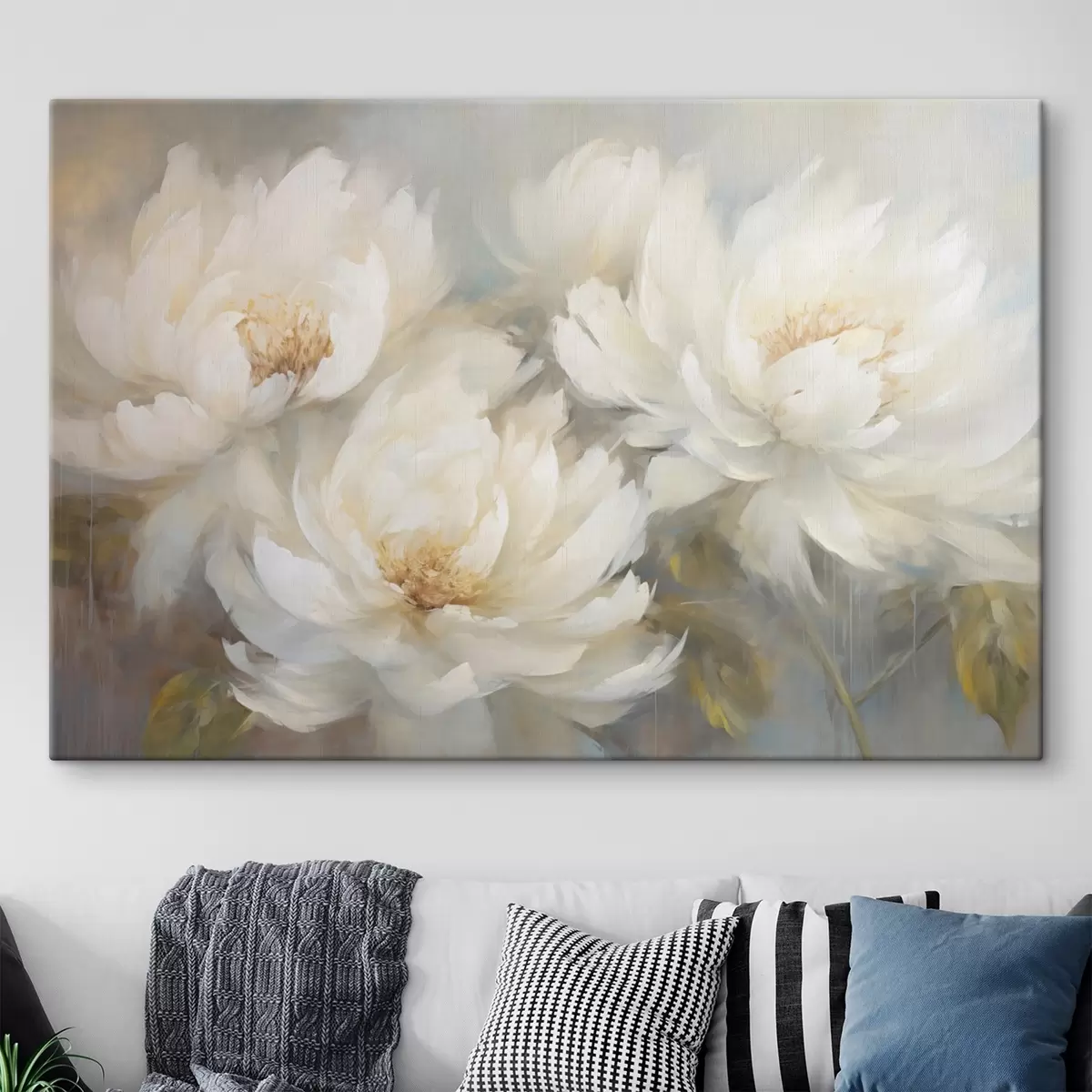 Vászonkép Három buja fehér pünkösdi rózsa finom háttér előtt Nr s45808