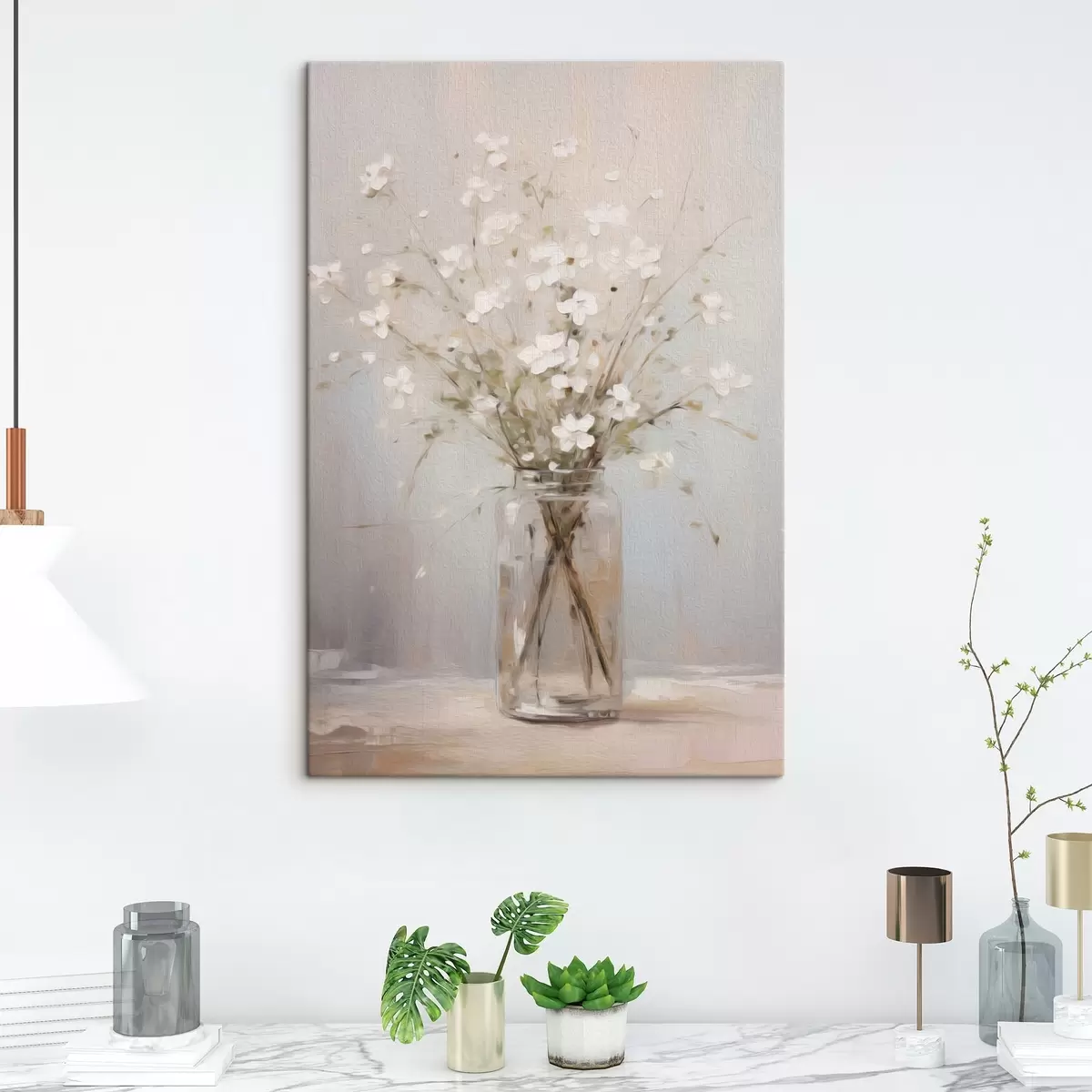Vászonkép Fehér virágcsokor átlátszó üvegvázában Nr s45814