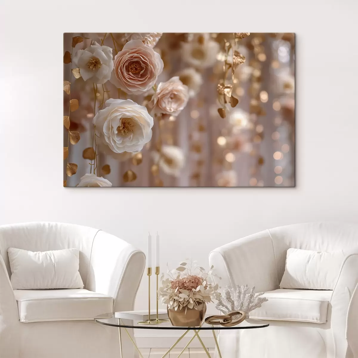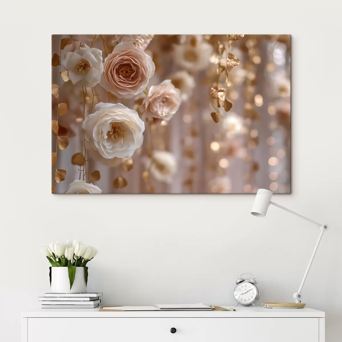 Vászonkép Krémes rózsák arany díszítéssel Nr s45824