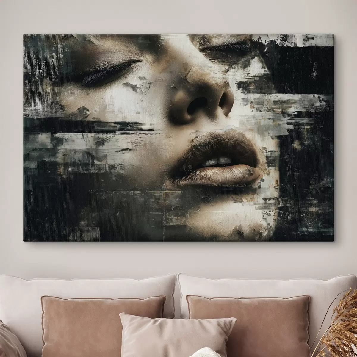 Vászonkép Absztrakt női portré glitch effektussal és textúrákkal Nr s45873
