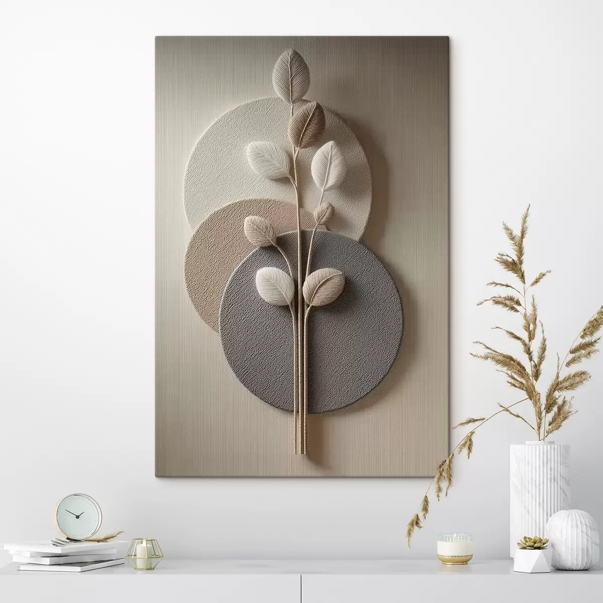 Vászonkép Relief körök és ág meleg semleges színekben Nr s45883
