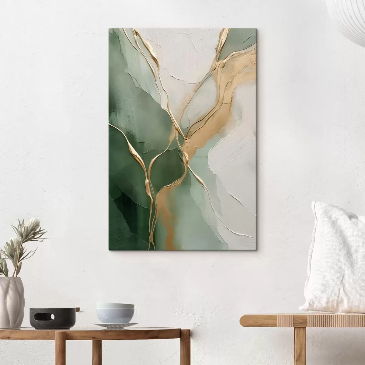 Vászonkép Smaragdkrémes absztrakció sárga patakokkal Nr s45887