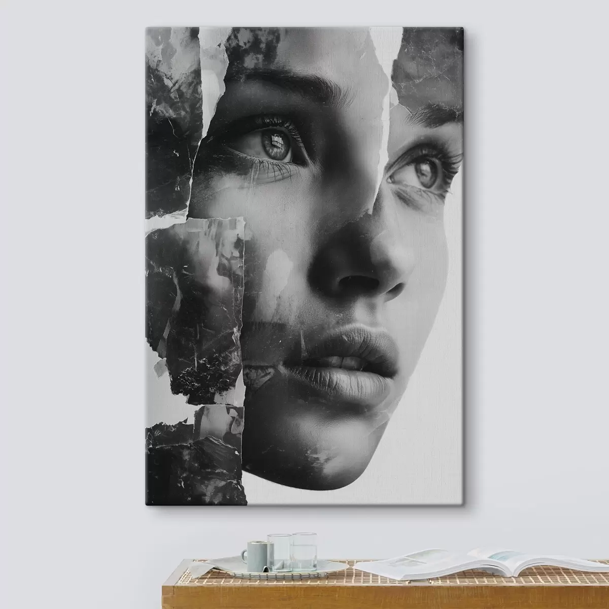 Vászonkép Fekete-fehér kollázs portré szakadt textúrájú rétegekkel Nr s45898