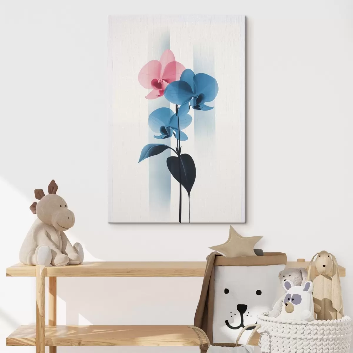 Vászonkép Fehér alapon, függőleges csíkokkal díszített levelű orchideák Nr s45925