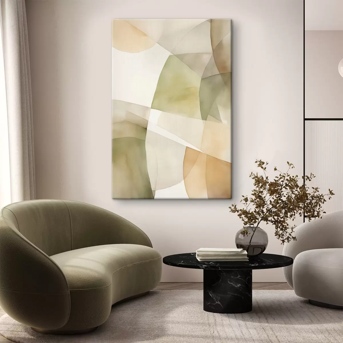 Vászonkép Absztrakt akvarell textúrájú geometrikus formák zöld, barna és bézs árnyalatokban Nr s45928