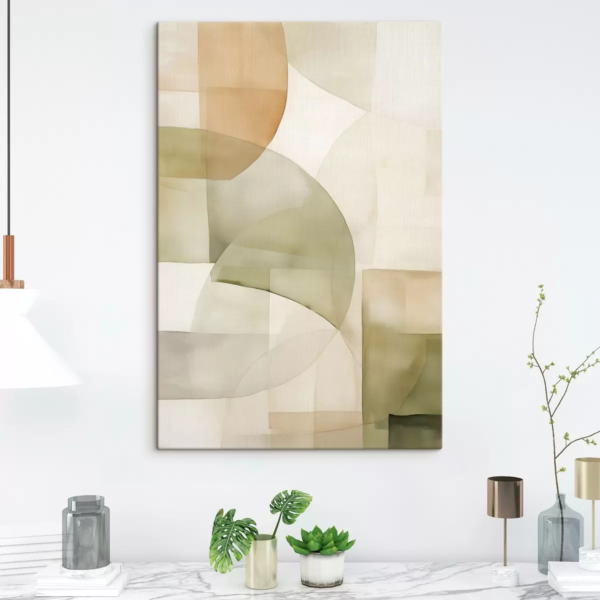 Vászonkép Absztrakt akvarell textúrájú geometrikus formák zöld, barna és bézs árnyalatokban Nr s45929