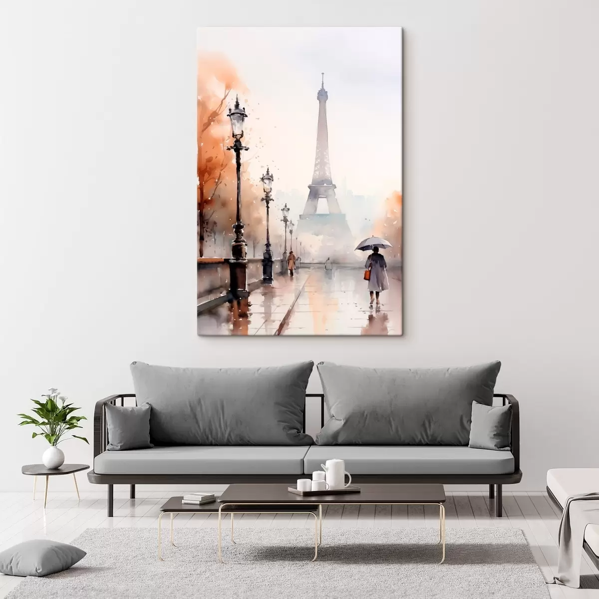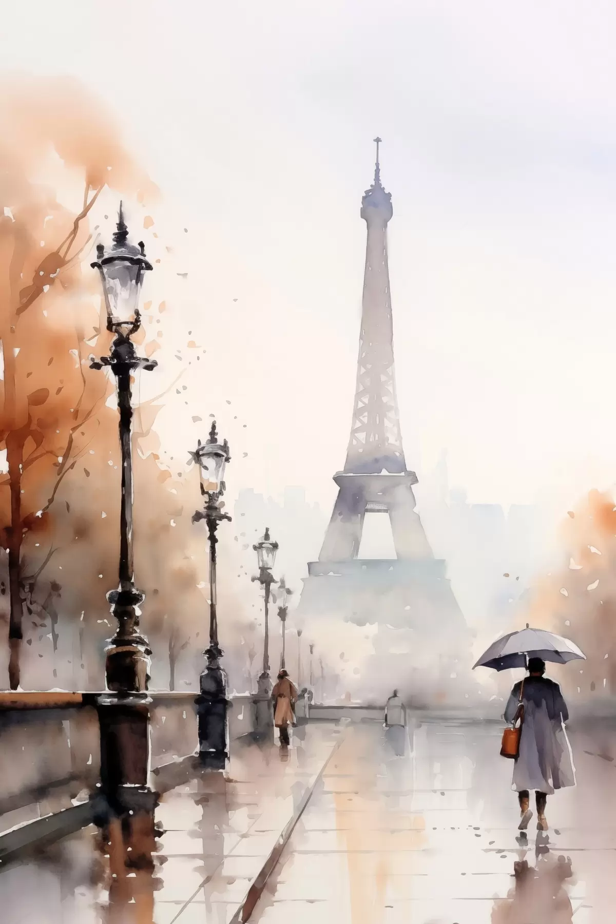Vászonkép Esős nap Párizsban, az Eiffel-torony háttérben és vintage utcai lámpákkal Nr s45930