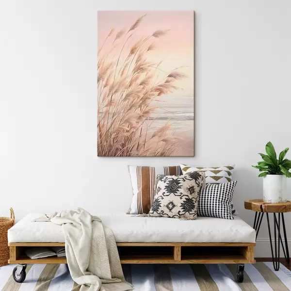 Vászonkép Pampas fű pasztell narancssárga színpalettával, világos rózsaszín égbolttal, nyugodt tájjal Nr s45934