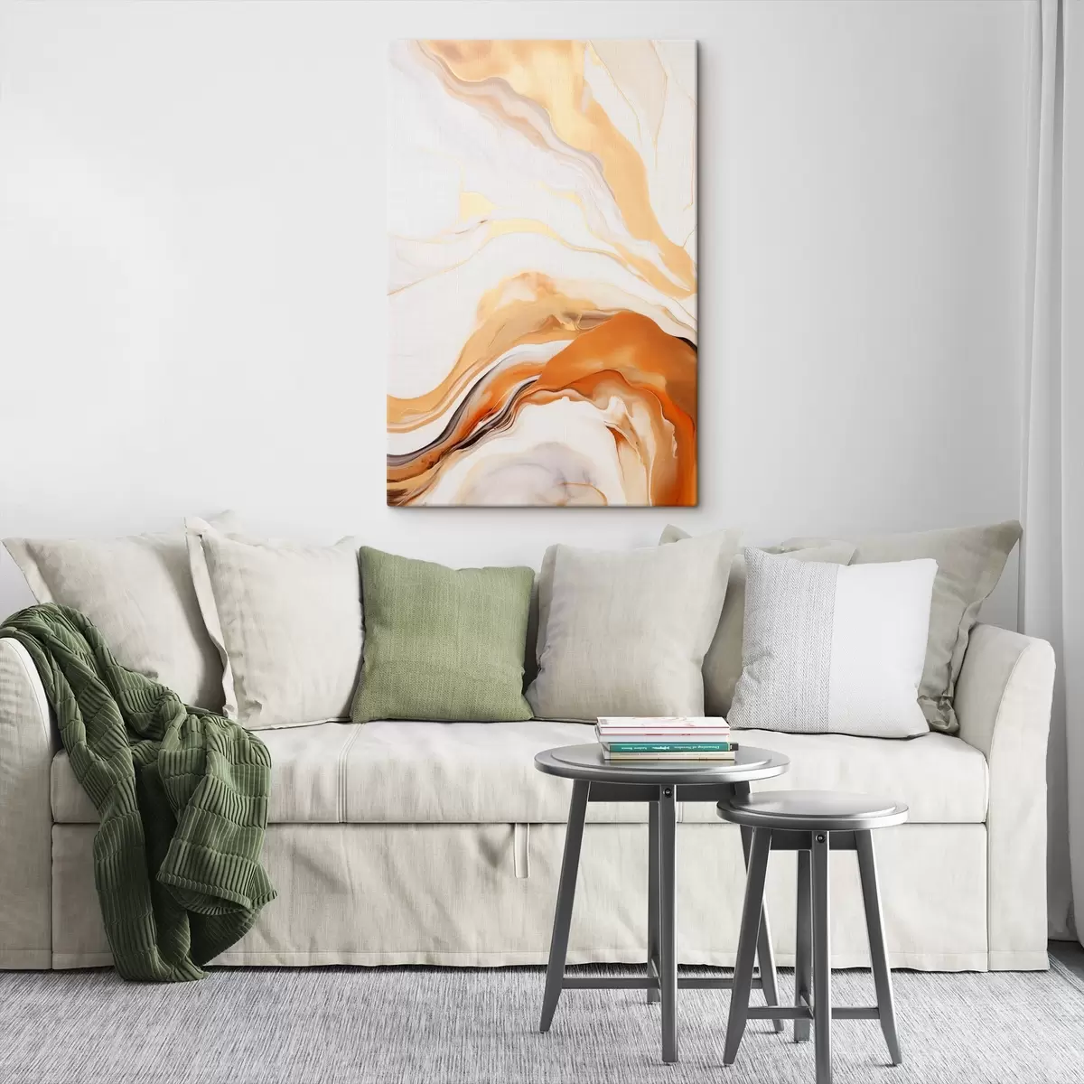Vászonkép Absztrakt festmény utánzat folyékony formákkal, fehér, narancssárga és barna árnyalatokban, minimalista stílusban Nr s45938
