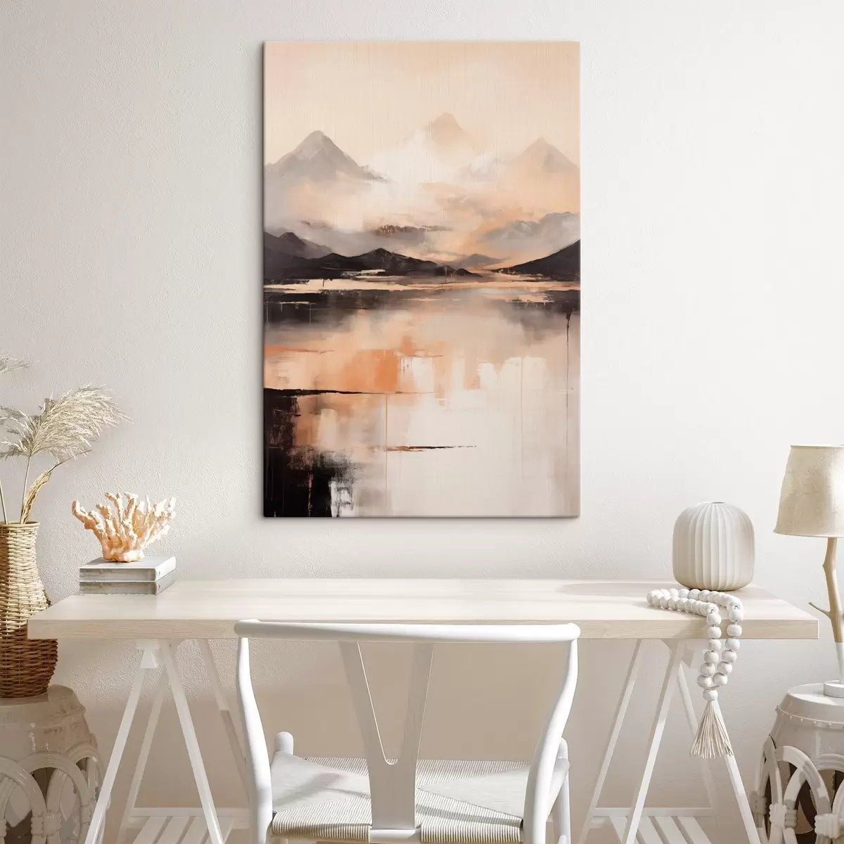 Vászonkép Hegységeket és tavat ábrázoló, texturált festmény Nr s45950