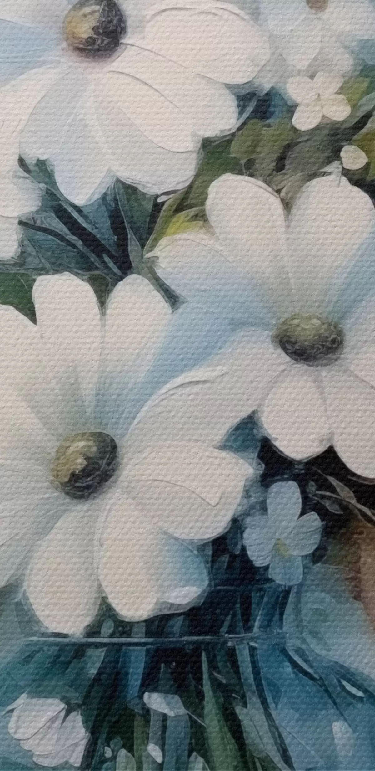 Vászonkép Kék vázában lévő margaréta csokor Nr s45959
