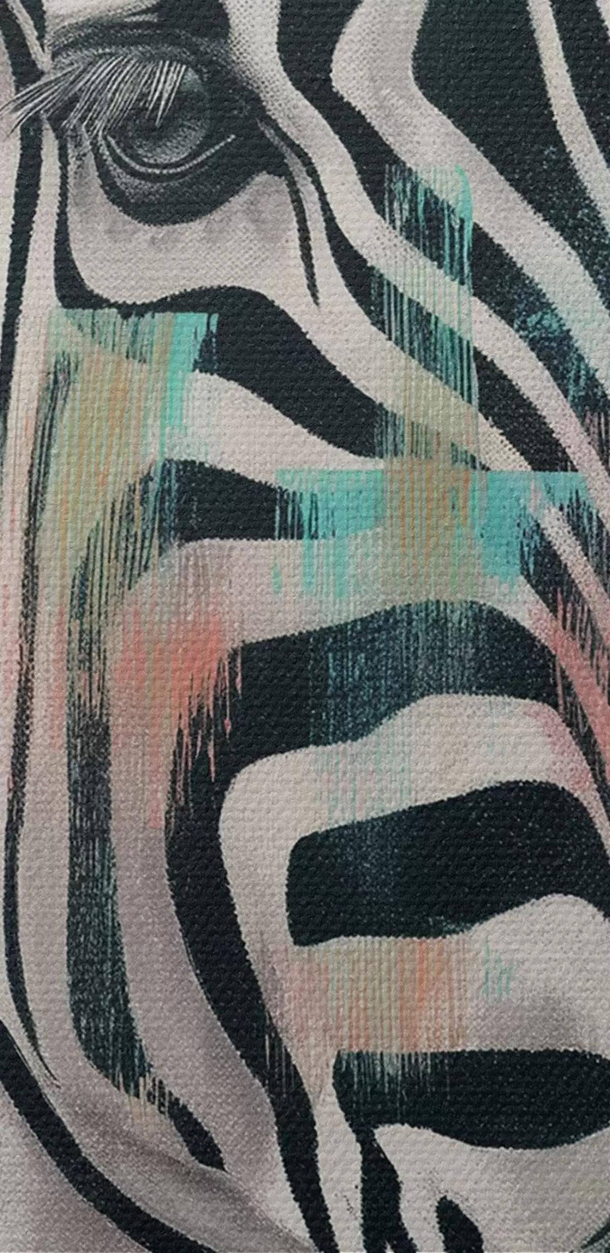 Ahhoz, hogy a vásznat a feszítőrúdra feszítsük anélkül, hogy a kép megsérülne, tükrözött képet használunk.