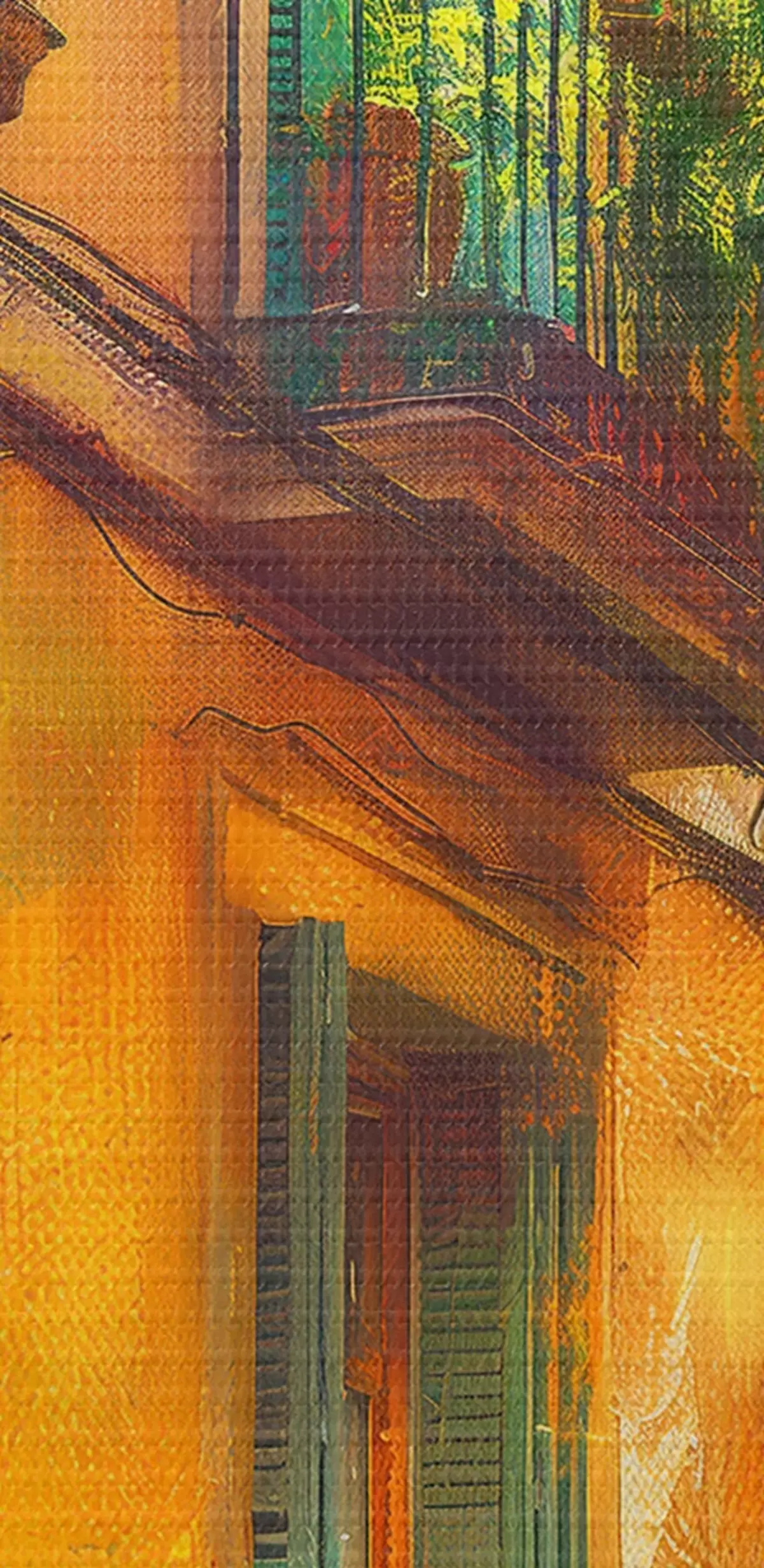 Ahhoz, hogy a vásznat a feszítőrúdra feszítsük anélkül, hogy a kép megsérülne, tükrözött képet használunk.
