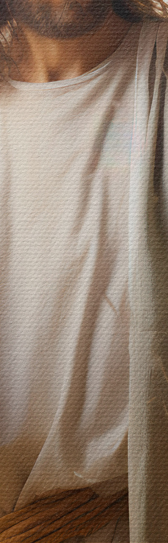 Ahhoz, hogy a vásznat a feszítőrúdra feszítsük anélkül, hogy a kép megsérülne, tükrözött képet használunk.