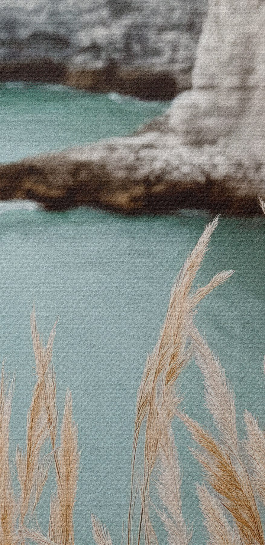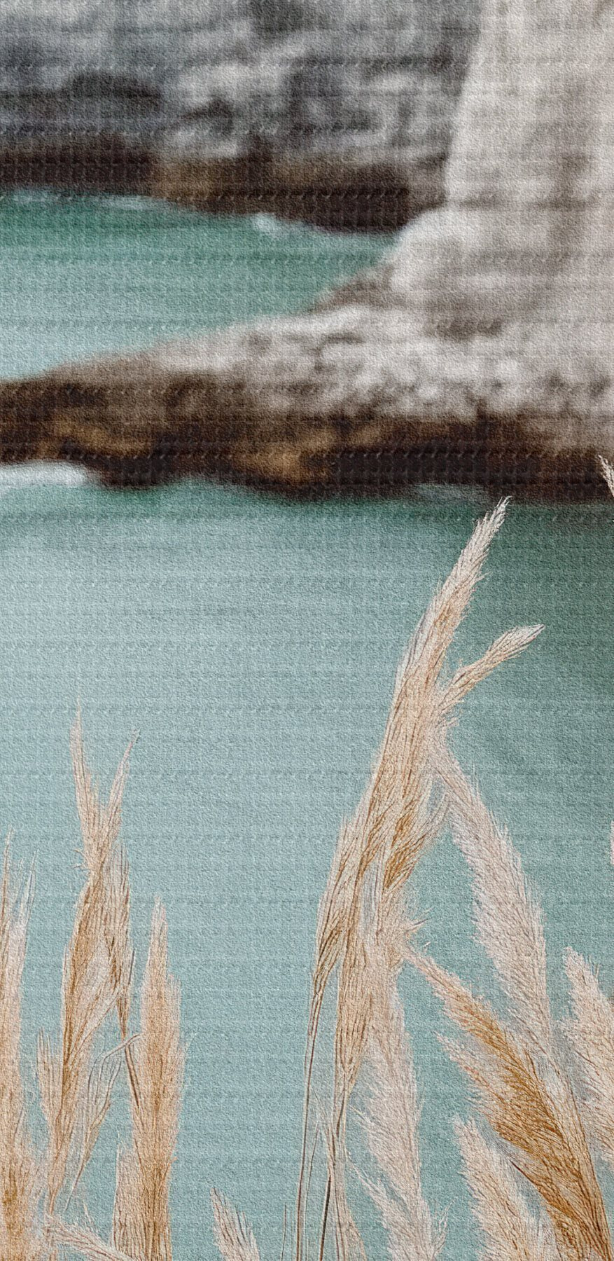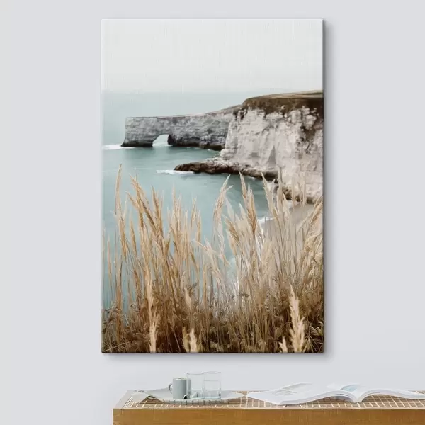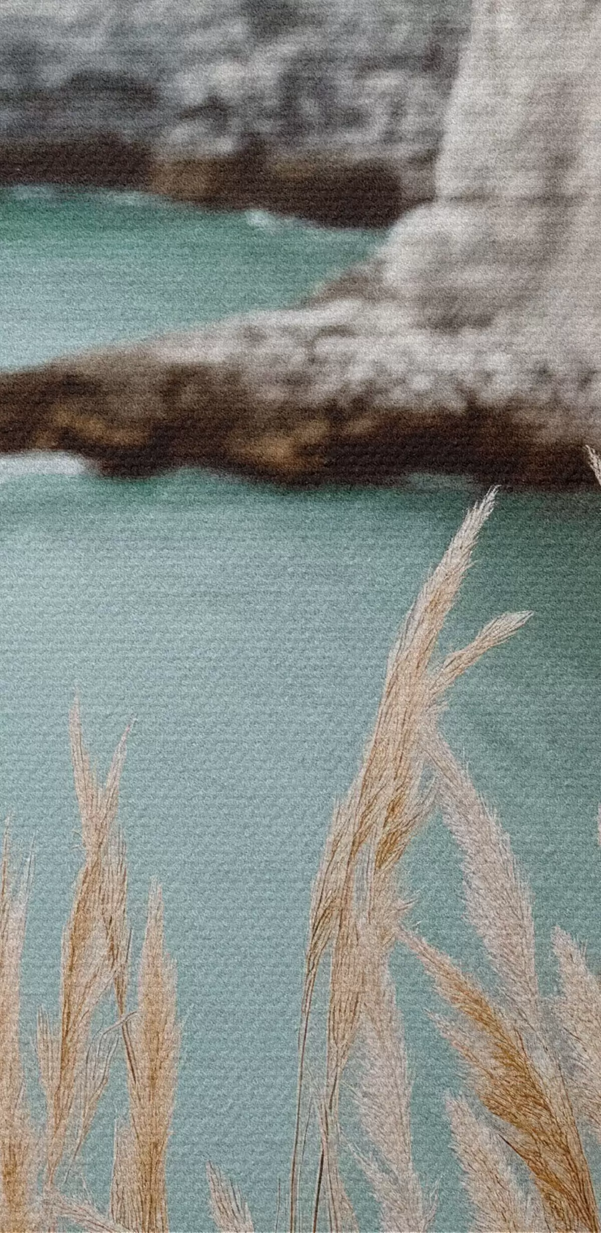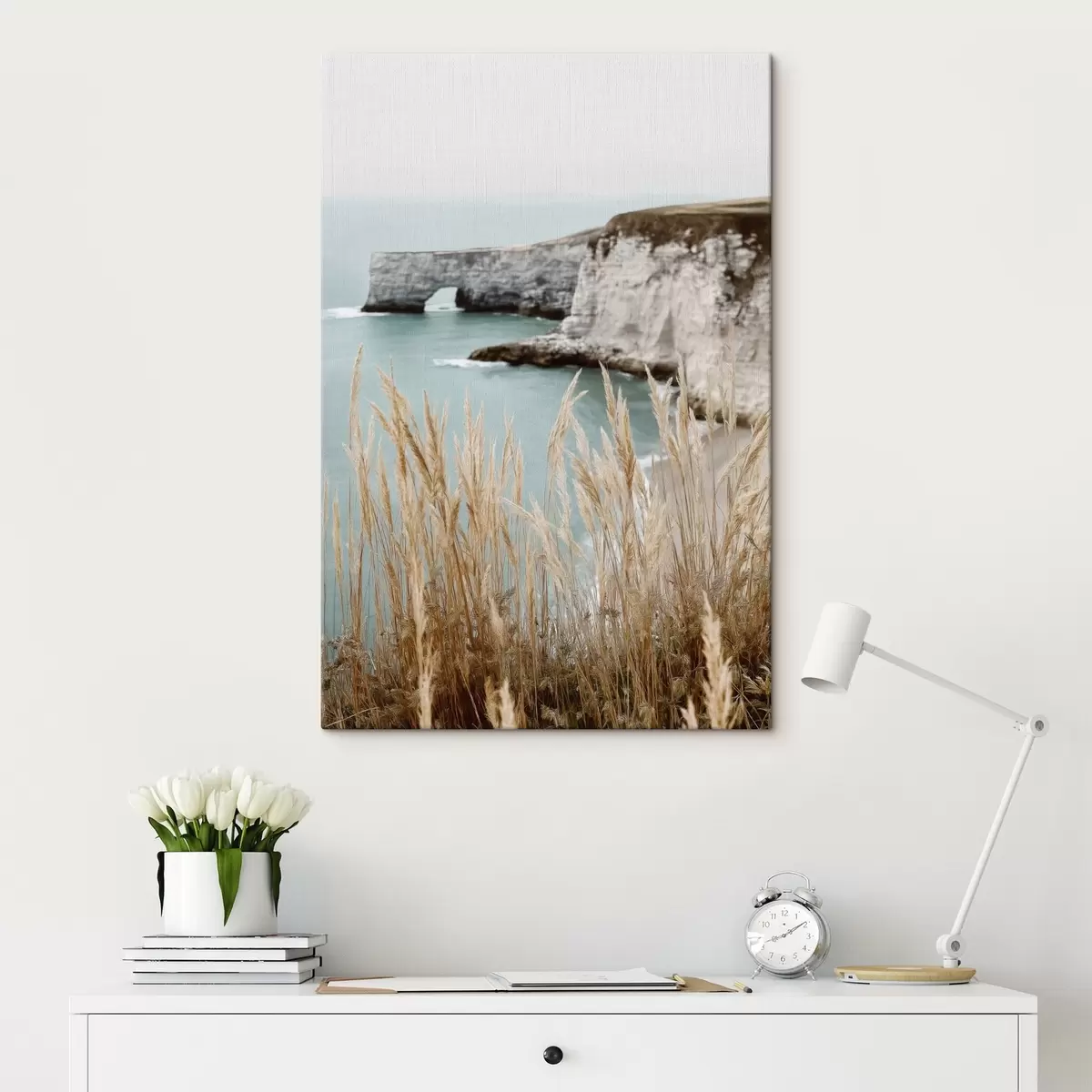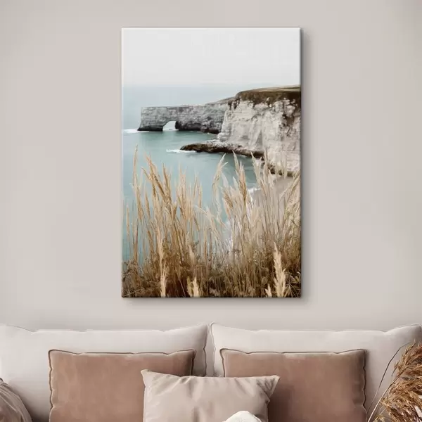 Vászonkép Parti sziklák, előtérben nádasokkal Nr s46141