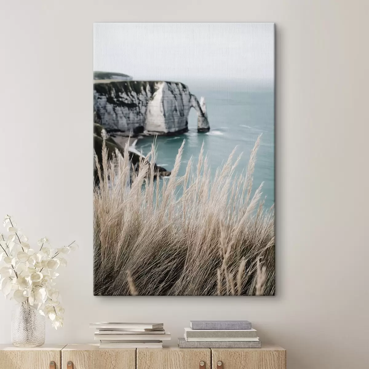 Vászonkép Tenger és sziklaív, kilátás a száraz fűszálak között Nr s46142