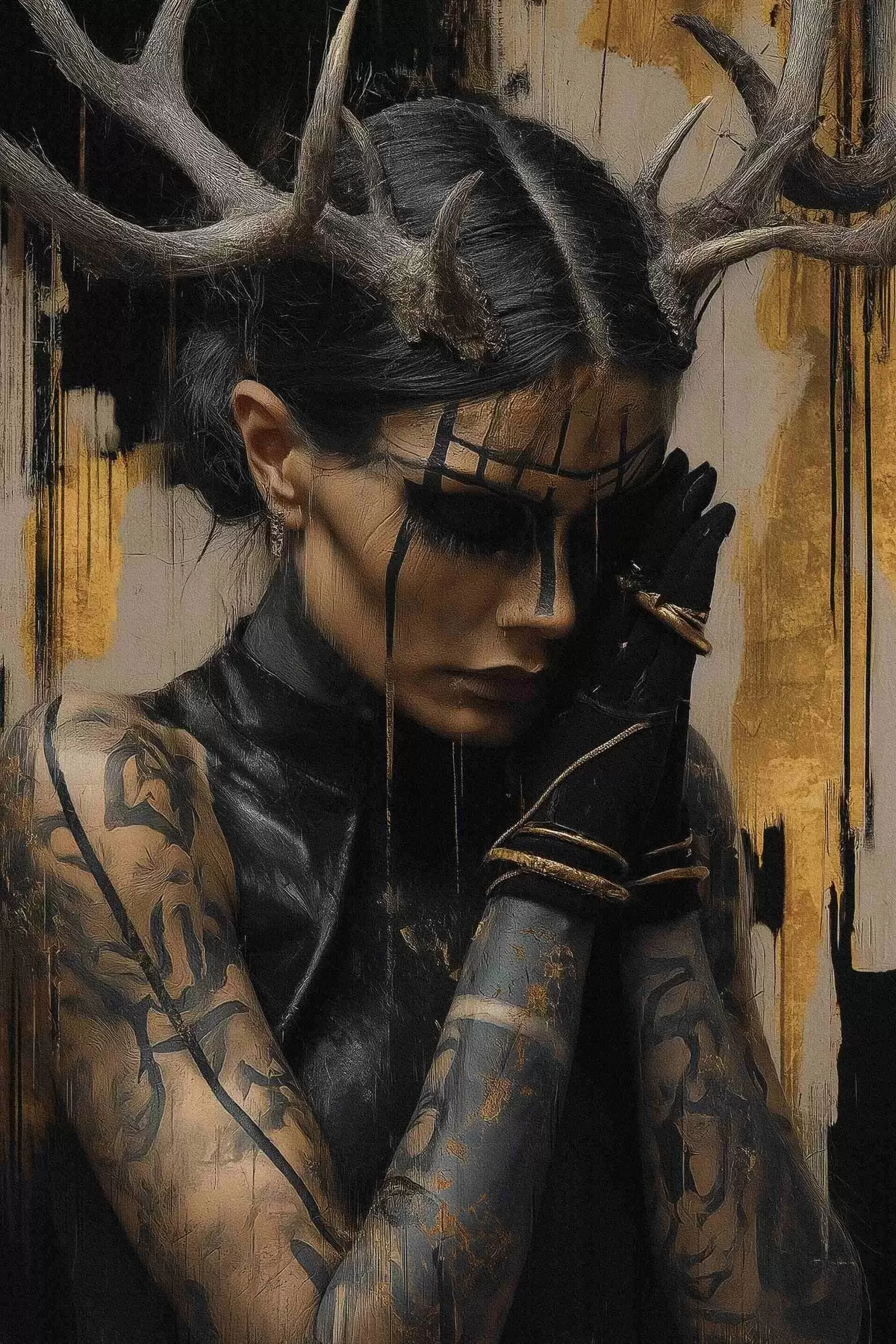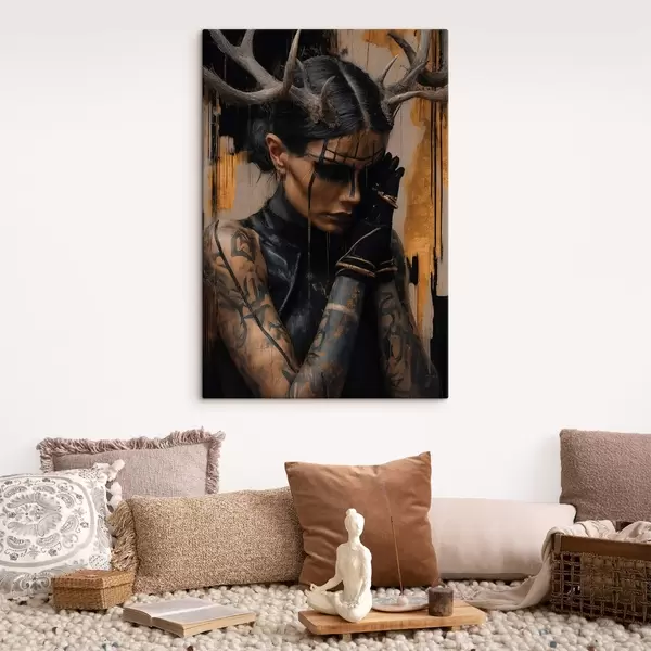 Vászonkép Sötét megjelenésű, szarvakkal rendelkező nő, fekete arcvonásokkal Nr s46144