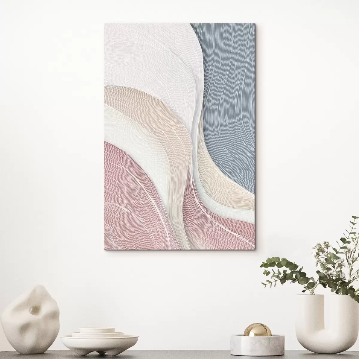 Vászonkép Világos, absztrakt hullámok halvány rózsaszín és szürkésfehér árnyalatokban Nr s46153
