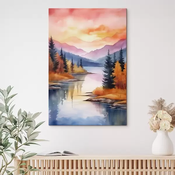 Vászonkép Őszi táj a tó partján, ragyogó égbolttal Nr s46155