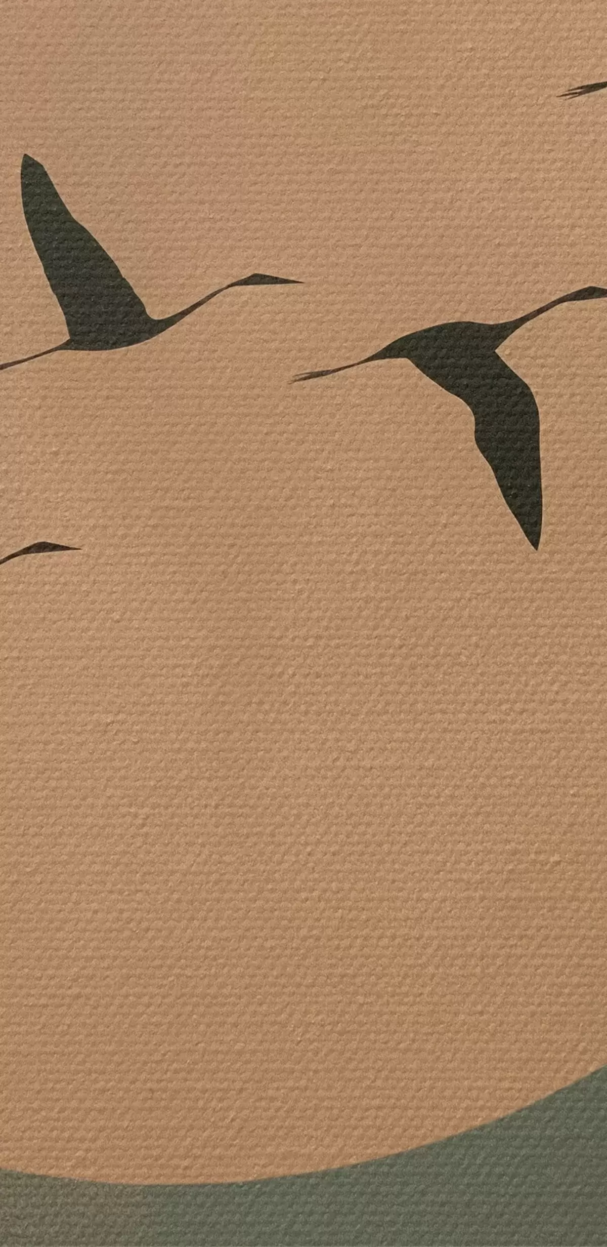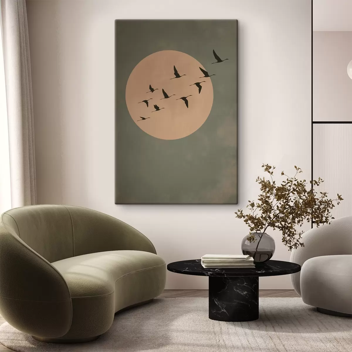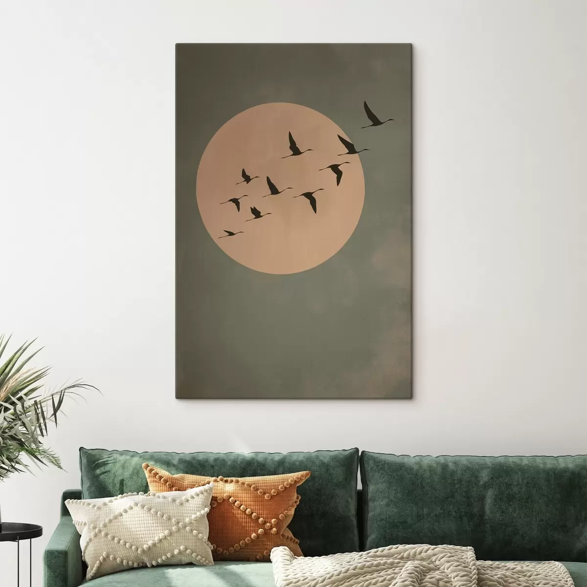 Vászonkép Madárraj repül a nagy, meleg hold előtt Nr s46162