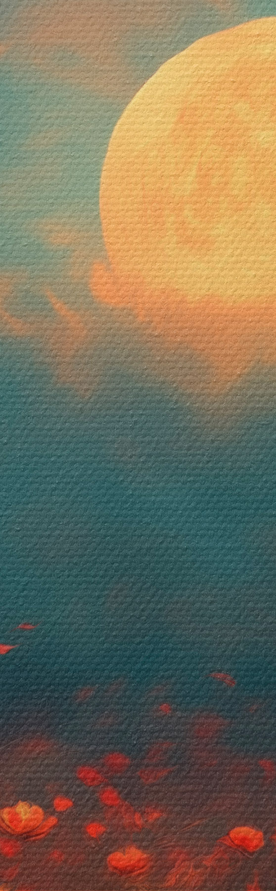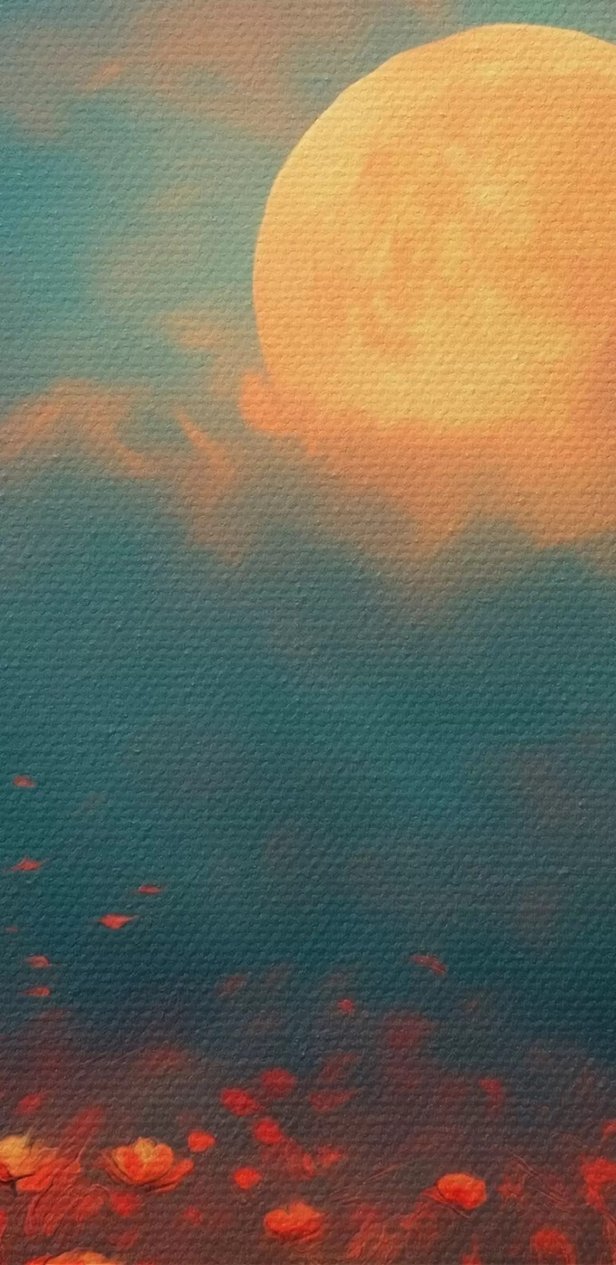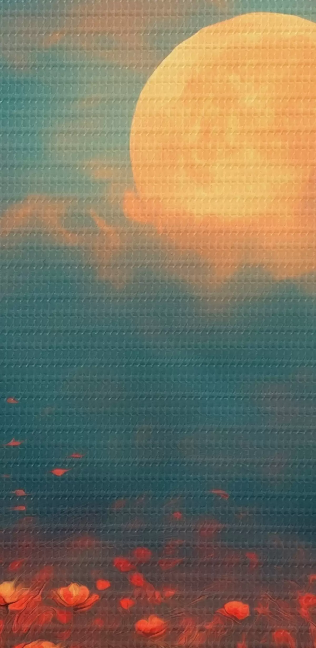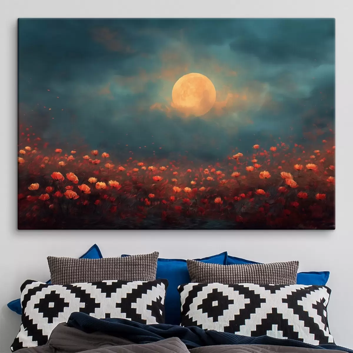 Vászonkép Hold a ködös esti égbolton, vörös virágok mezője felett Nr s46167