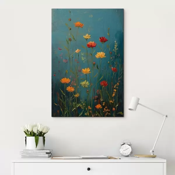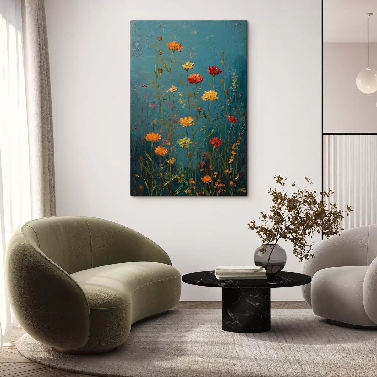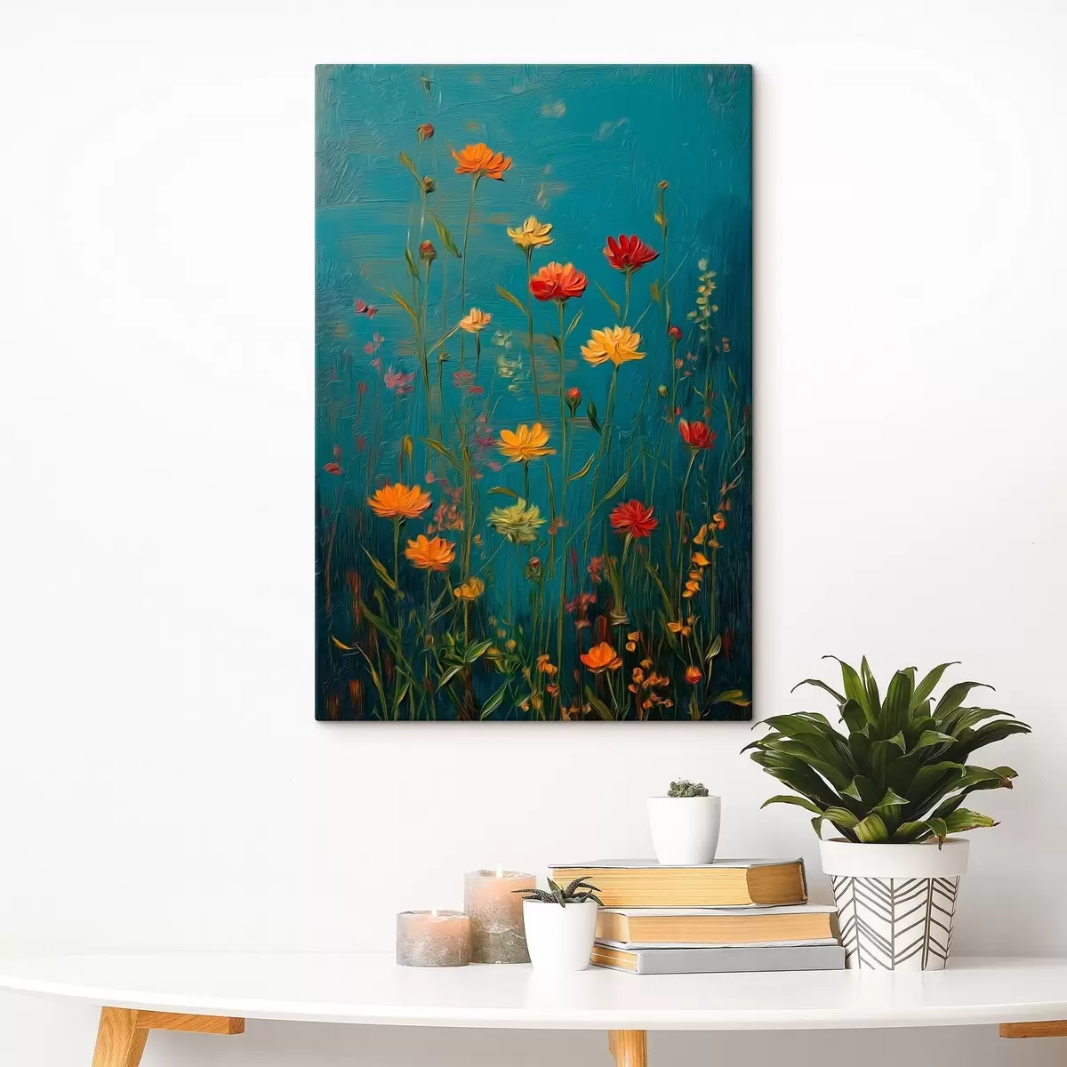 Vászonkép Vadvirágok mély türkizkék háttér előtt Nr s46169