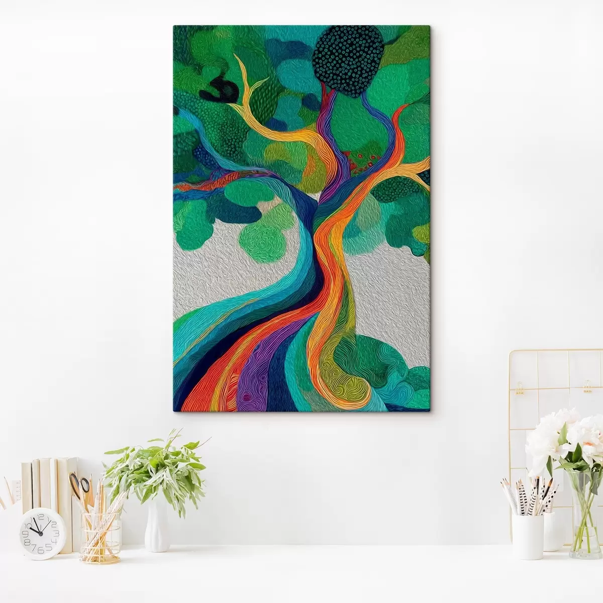 Vászonkép Fa szivárványos ágakkal zöld háttér előtt Nr s46173