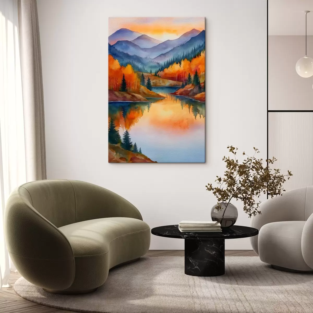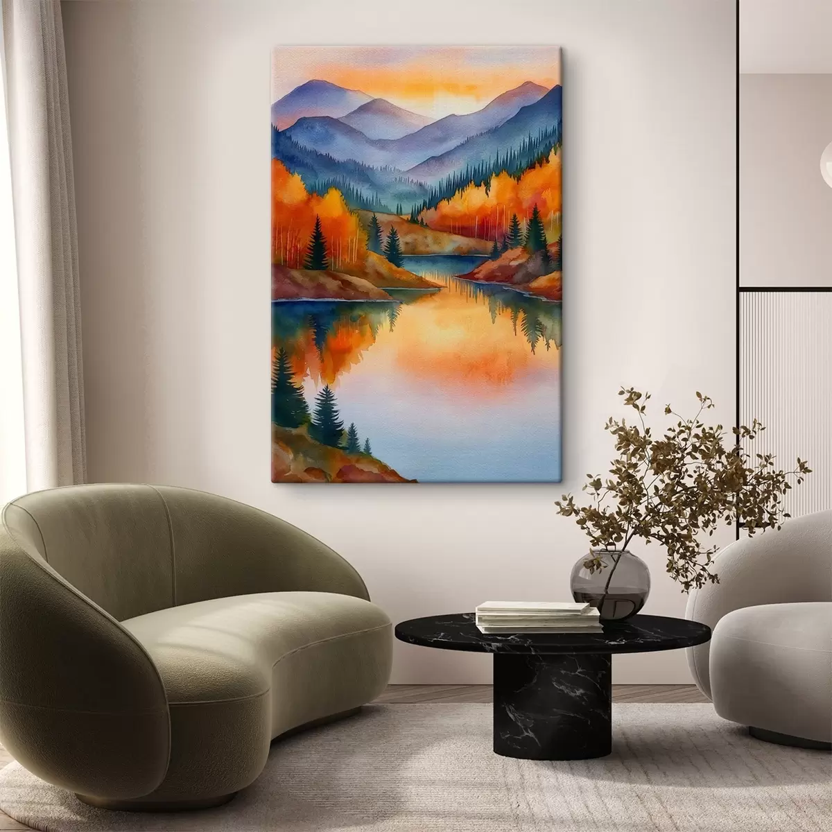 Vászonkép Őszi táj, hegyek tükröződnek a nyugodt tóban Nr s46174