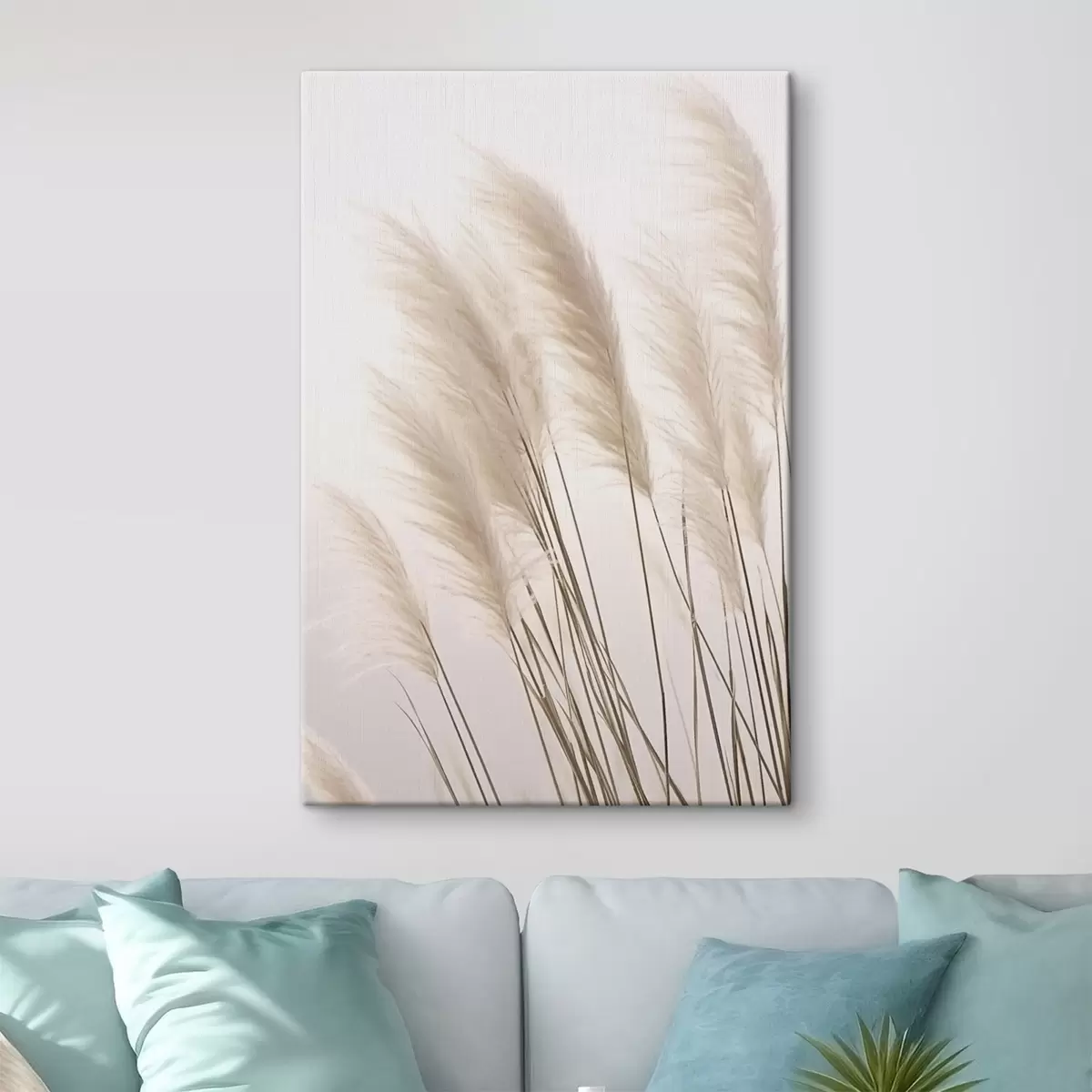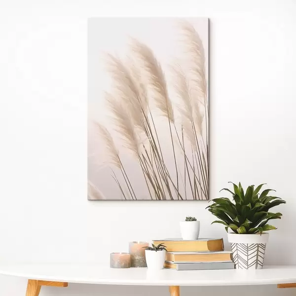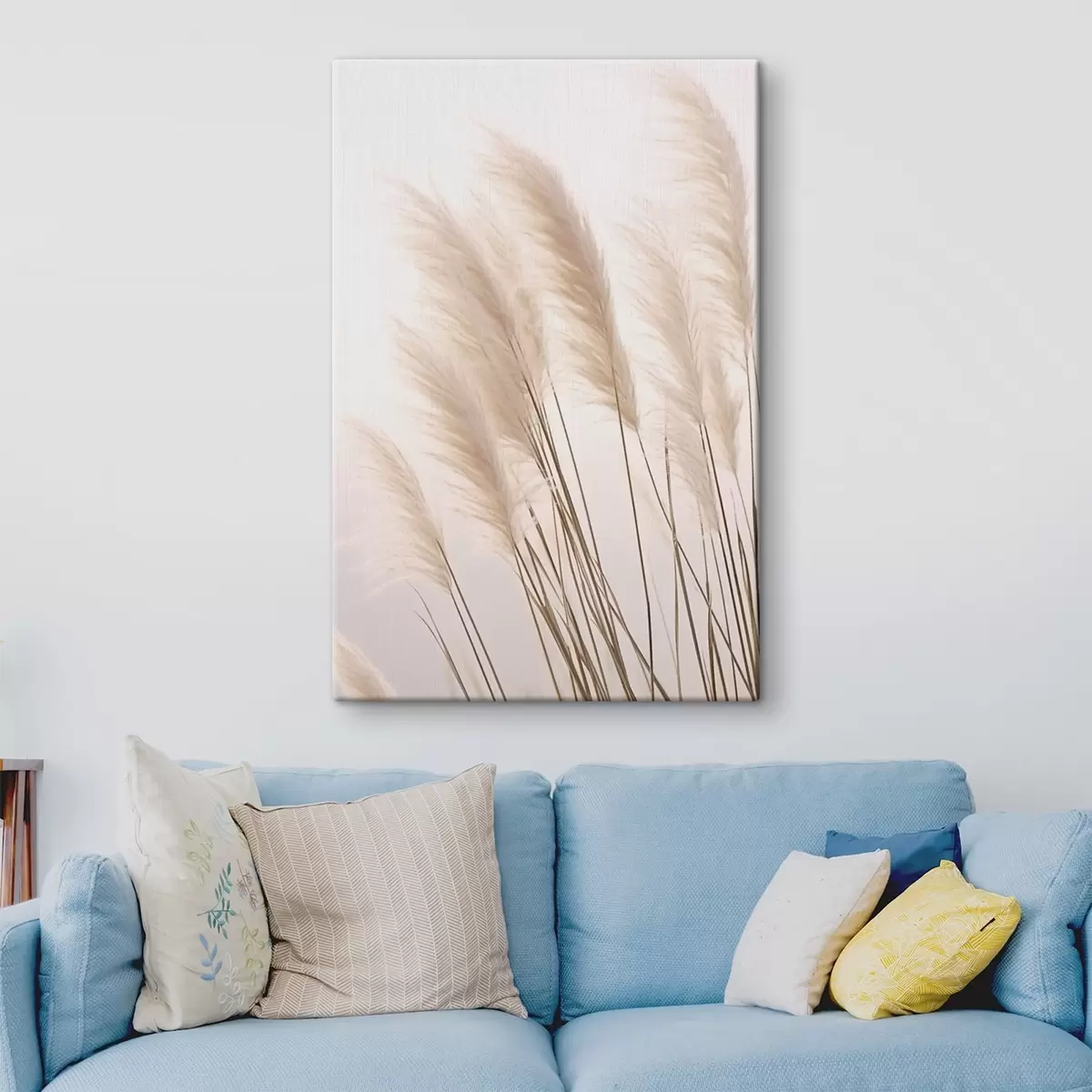 Vászonkép Világos fűszálak bolyhos csúcsokkal halvány háttér előtt Nr s46179
