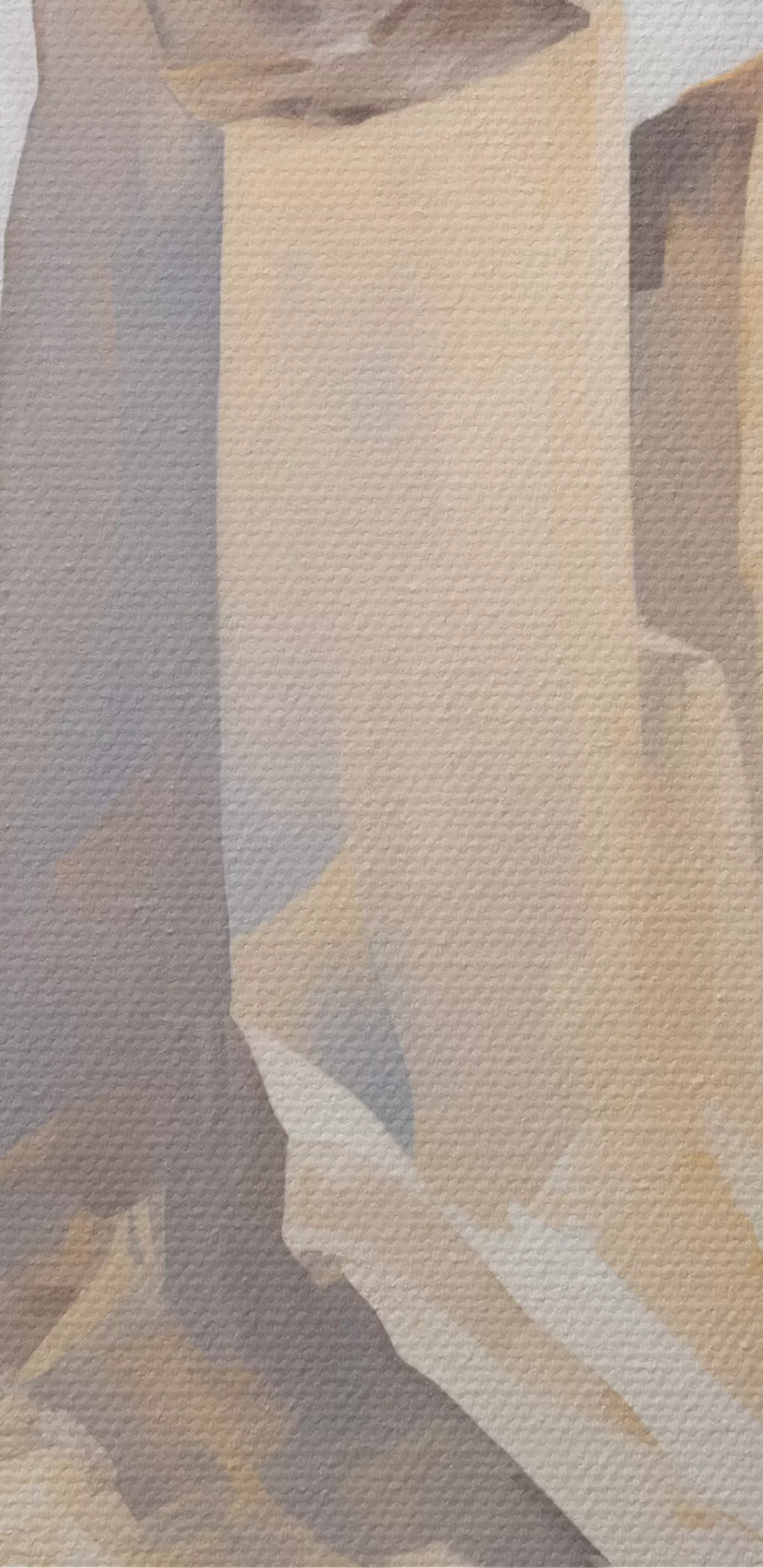 Ahhoz, hogy a vásznat a feszítőrúdra feszítsük anélkül, hogy a kép megsérülne, tükrözött képet használunk.