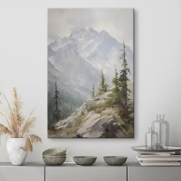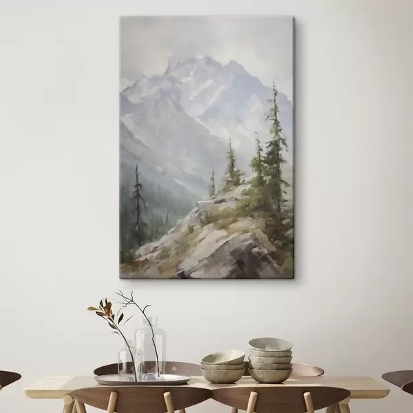 Vászonkép Fenyőfák a hegyek hátterében Nr s46202