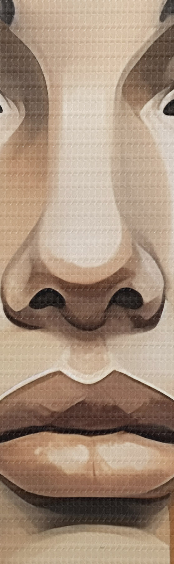 Ahhoz, hogy a vásznat a feszítőrúdra feszítsük anélkül, hogy a kép megsérülne, tükrözött képet használunk.