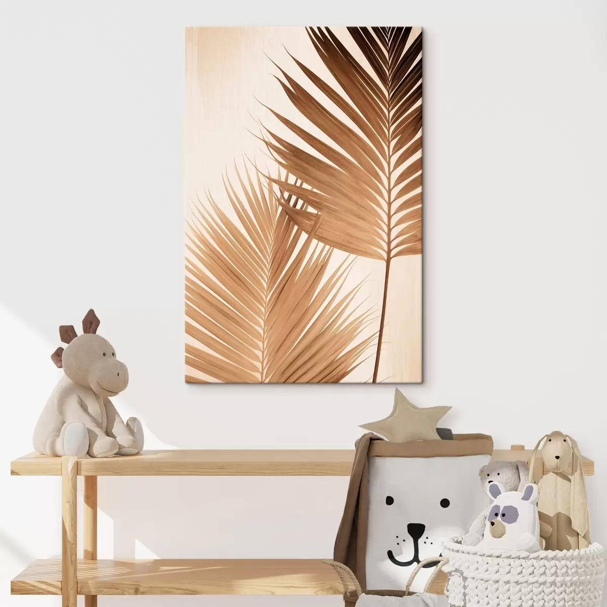Vászonkép Barna árnyalatú pálmalevelek, semleges háttér, minimalista stílus, természetes megvilágítás, trópusi hangulat Nr s46274