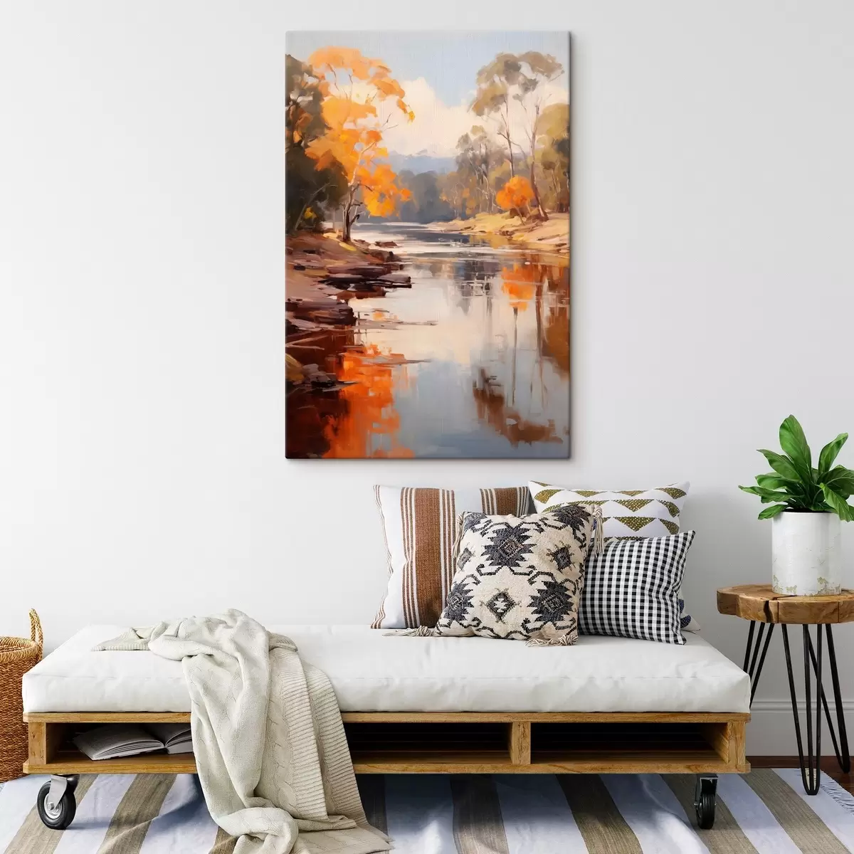 Vászonkép Őszi táj, folyó fákkal a partján, erdő a háttérben, tükröződések a vízen Nr s46280