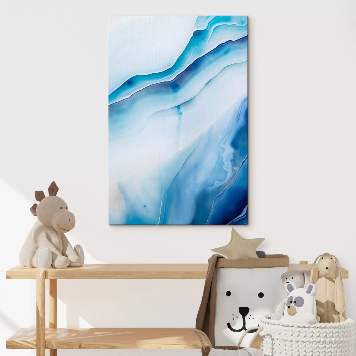 Vászonkép Absztrakt kék-fehér achátminta, kavargó vonalak és színátmenetek, sima textúra, modern művészet, minimalista Nr s46291