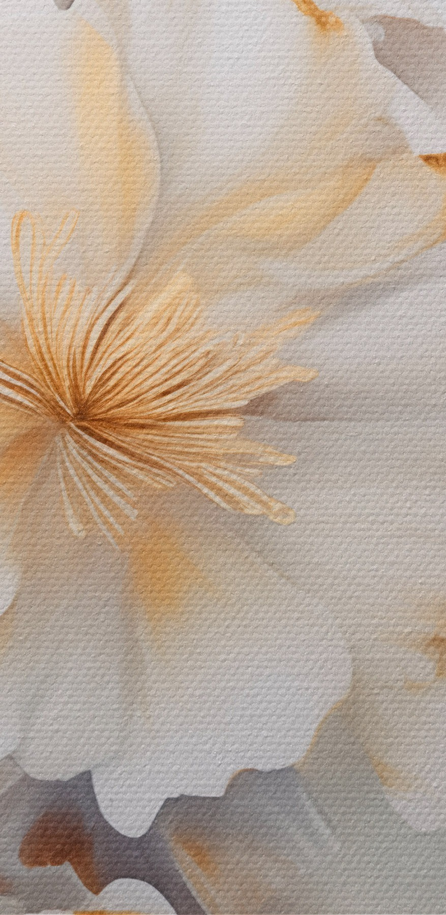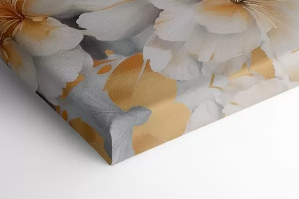 Vászonkép Fehér virágok sárga részletekkel, finom árnyékokkal ellátott szirmok, finom márványhatású világos háttér Nr s46292
