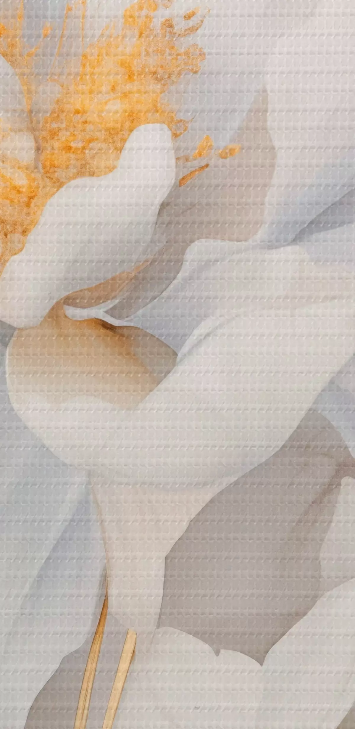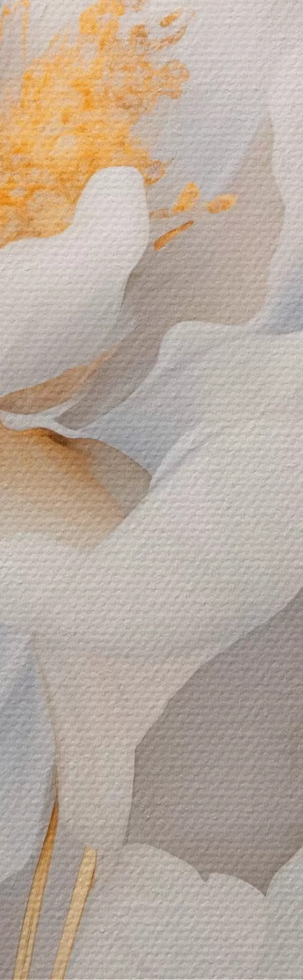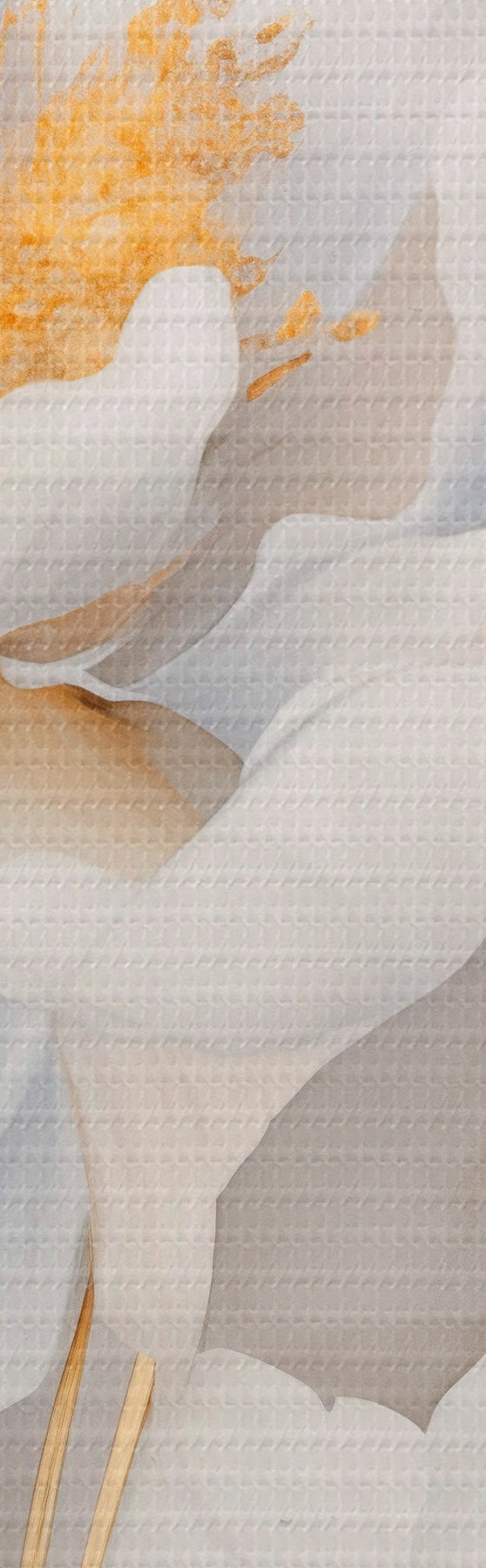 Vászonkép Fehér virágok sárga bibével és szárral, finom szirmokkal, elegáns kompozíció, semleges háttér Nr s46293