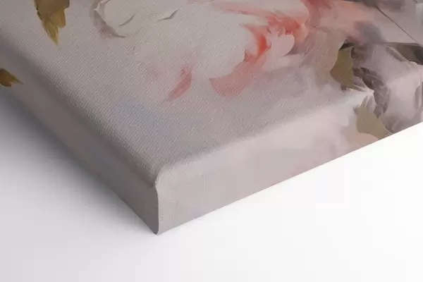Vászonkép Világos rózsaszín pünkösdi rózsák csokor zöld levelekkel, lágy ecsetvonásokkal, pasztell színekkel, világos háttérrel Nr s46294