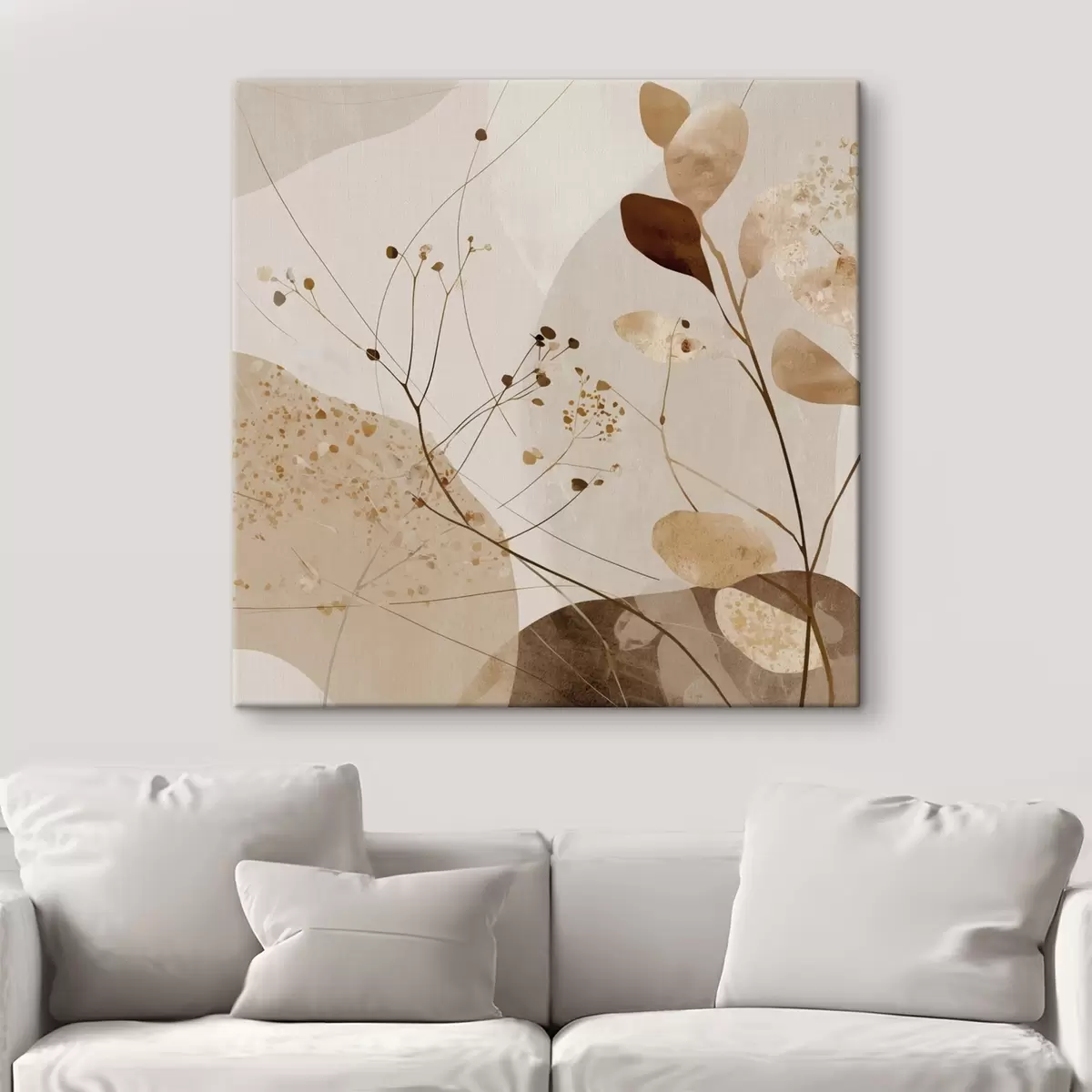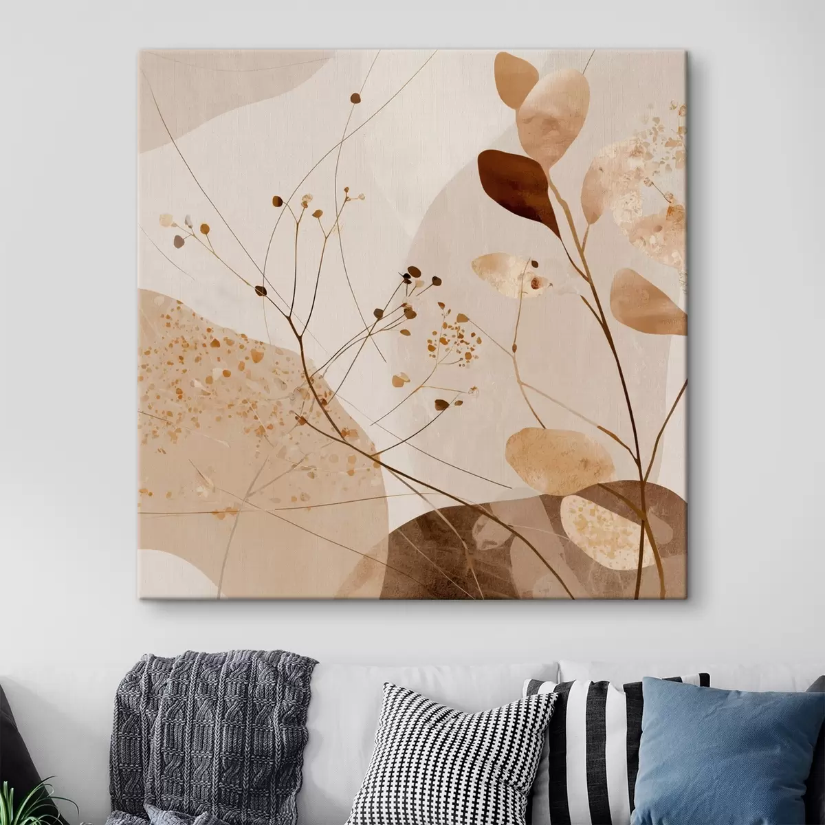 Vászonkép Absztrakt formák és növényi motívumok bézs árnyalatokban Nr s46309