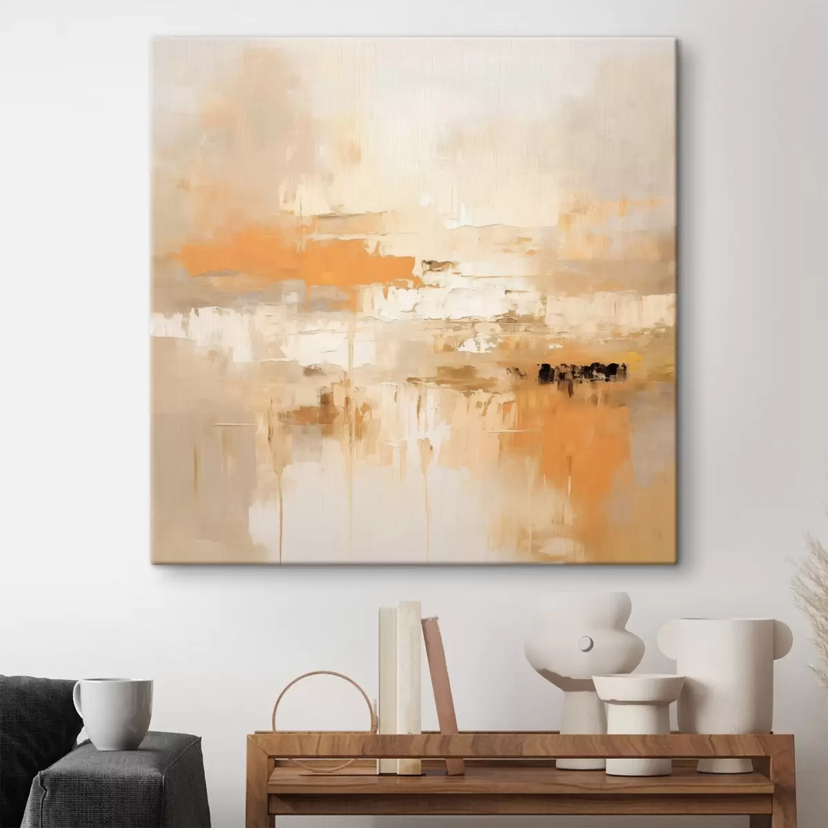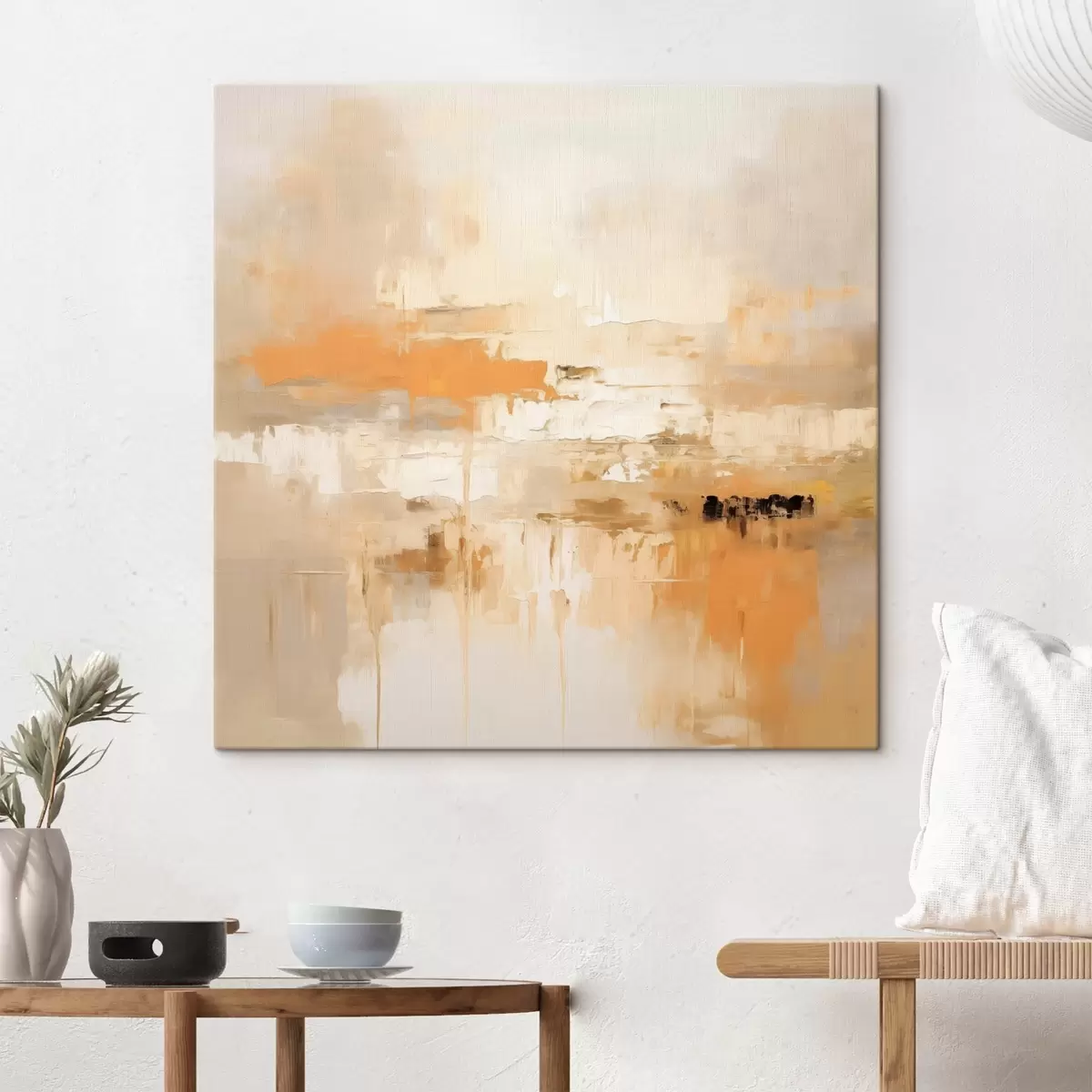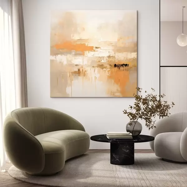 Vászonkép Tájkép absztrakció olajfestékkel, narancssárga és bézs árnyalatokkal Nr s46314