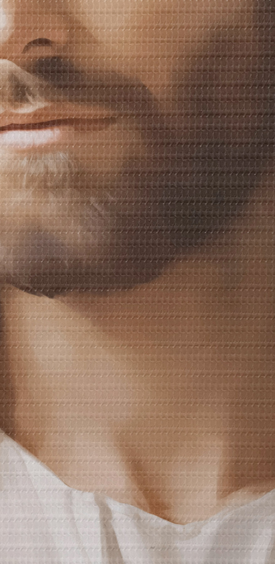 Ahhoz, hogy a vásznat a feszítőrúdra feszítsük anélkül, hogy a kép megsérülne, tükrözött képet használunk.