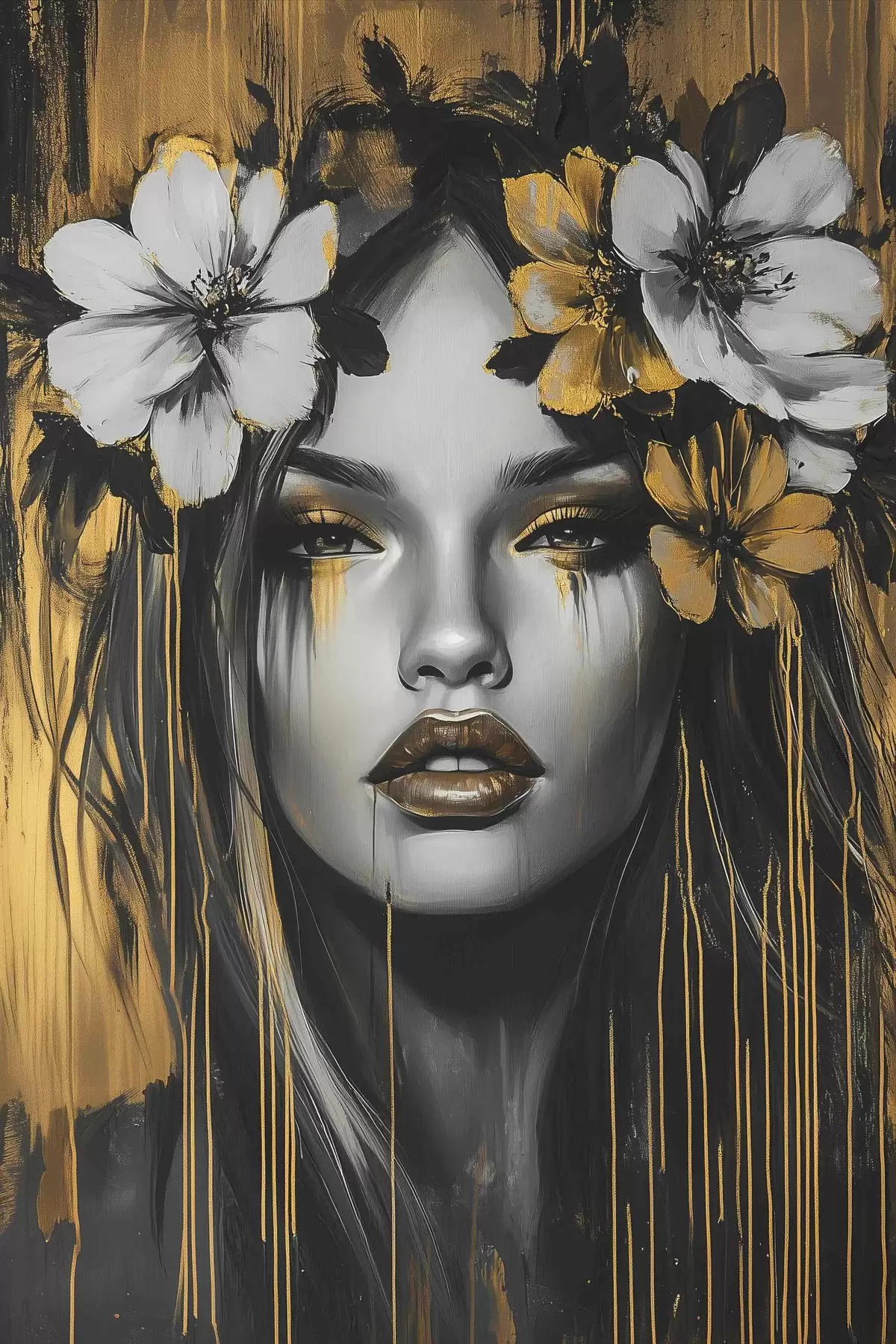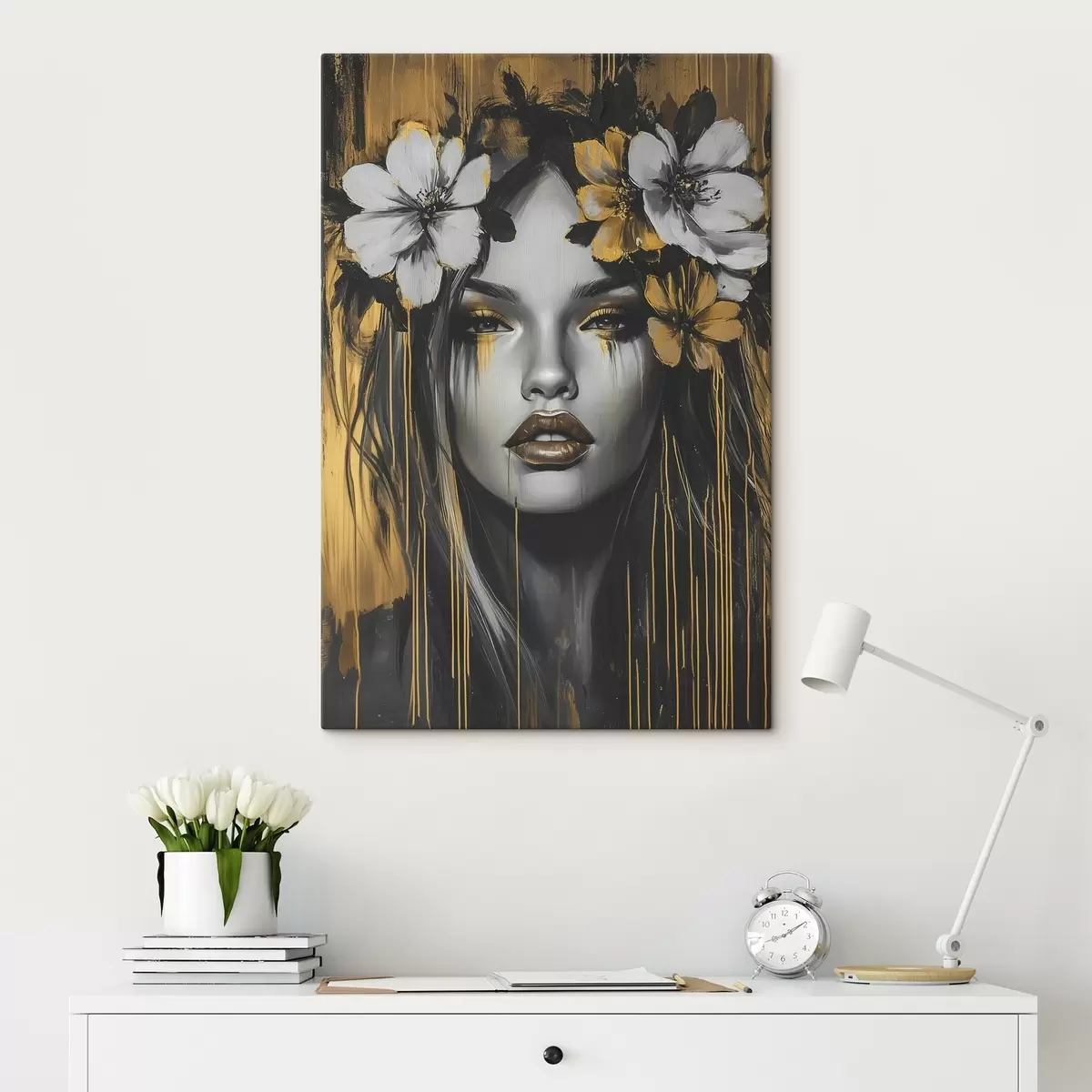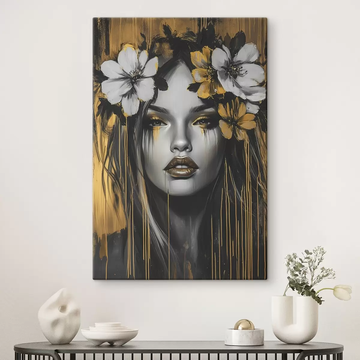 Vászonkép Absztrakt portré egy nőről virágokkal Nr s46454