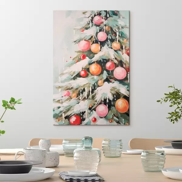 Vászonkép Karácsonyfa hóval és rózsaszín gömbökkel Nr s46480