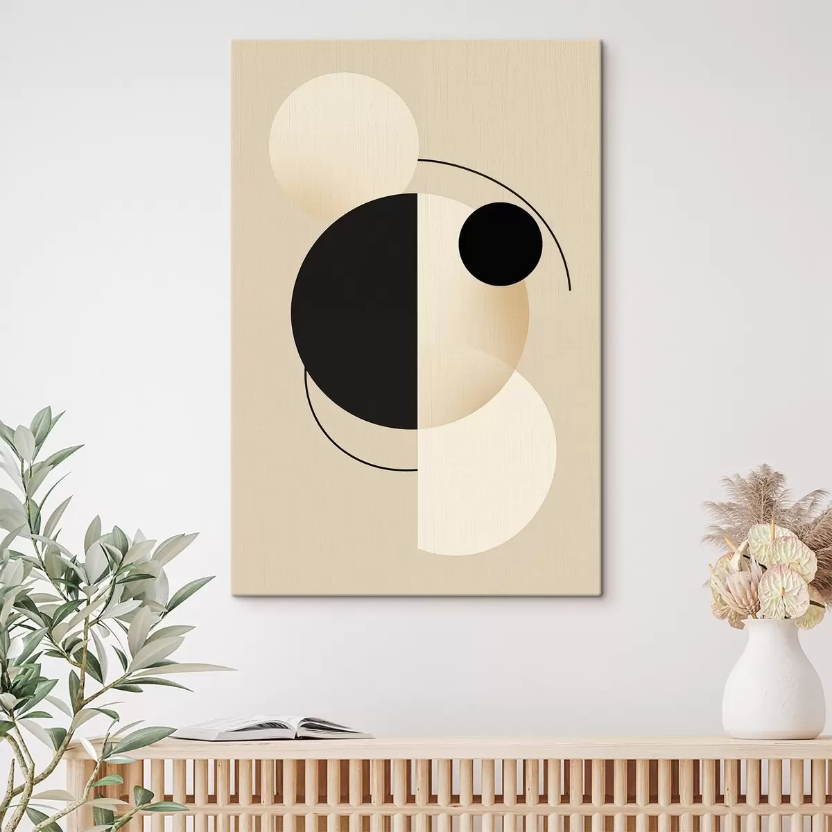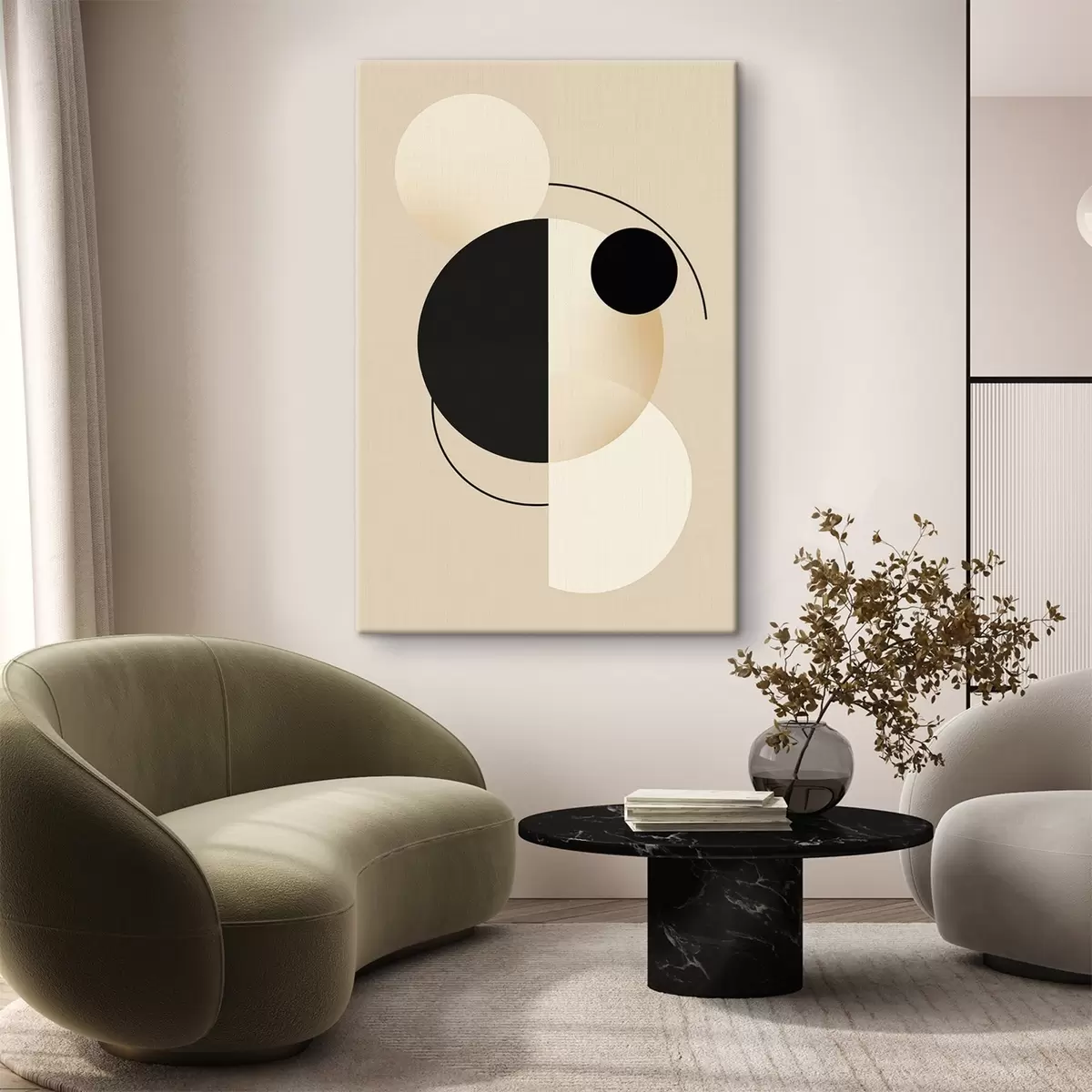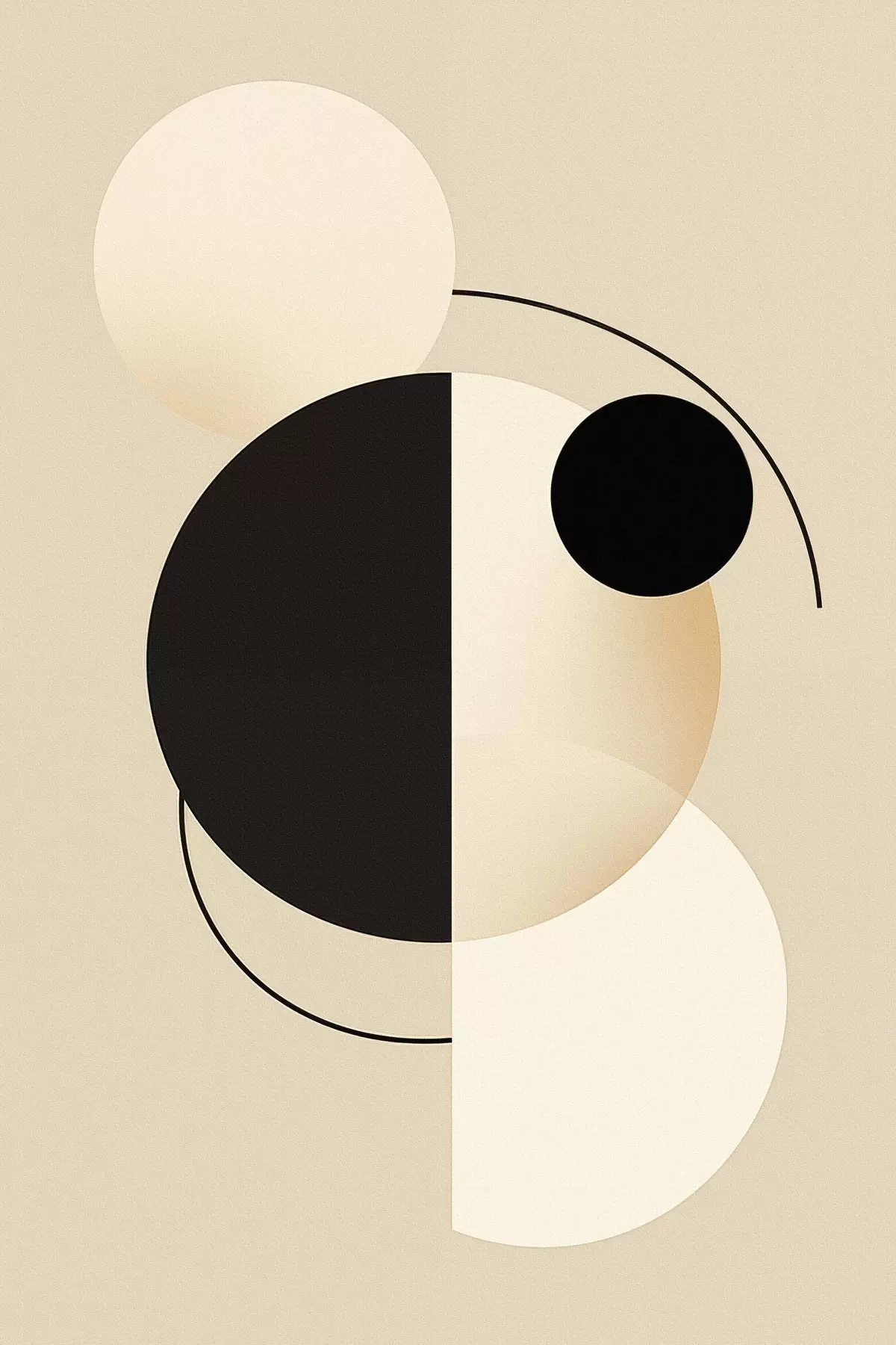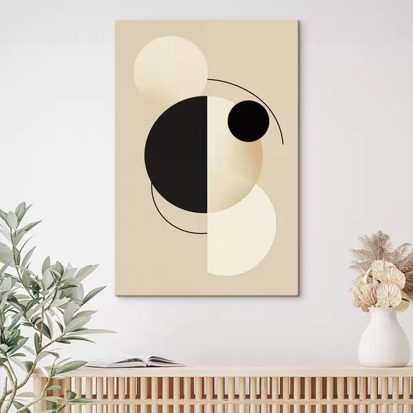 Vászonkép Grafikus körök és ívek puha bézs és fekete színben Nr s46497