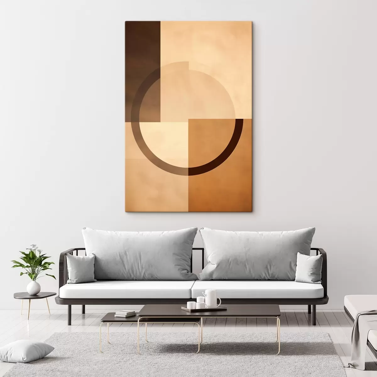 Vászonkép Halvány négyzetek áttetsző gyűrűvel, meleg földszínekkel Nr s46498