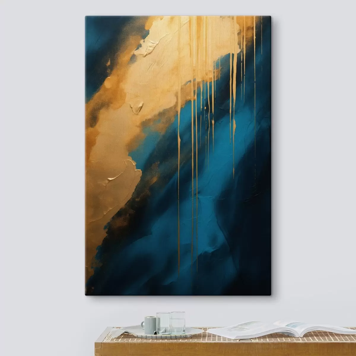 Vászonkép Zöldeskék és mélykék absztrakt, áramló meleg fénycsóvával Nr s46509